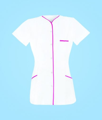 STELO ROZM. S Tunika medyczna rozpinana z lamówką różową damska, TO88024/WHTT/S