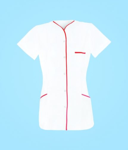 STELO ROZM. XL Tunika medyczna rozpinana z lamówką czerwoną damska, TO88023/WHTT/XL