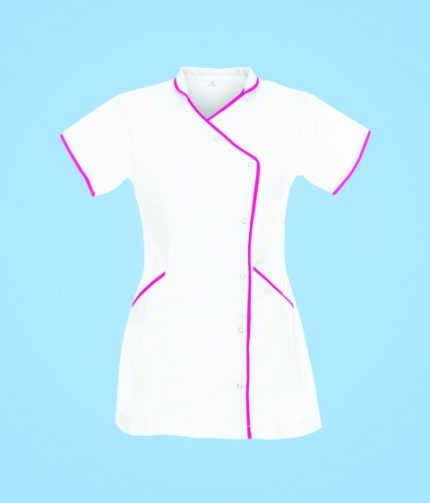 STELO ROZM. XXS Tunika medyczna rozpinana ze stójką, różowa lamówka, 88044/WHTT/XXS