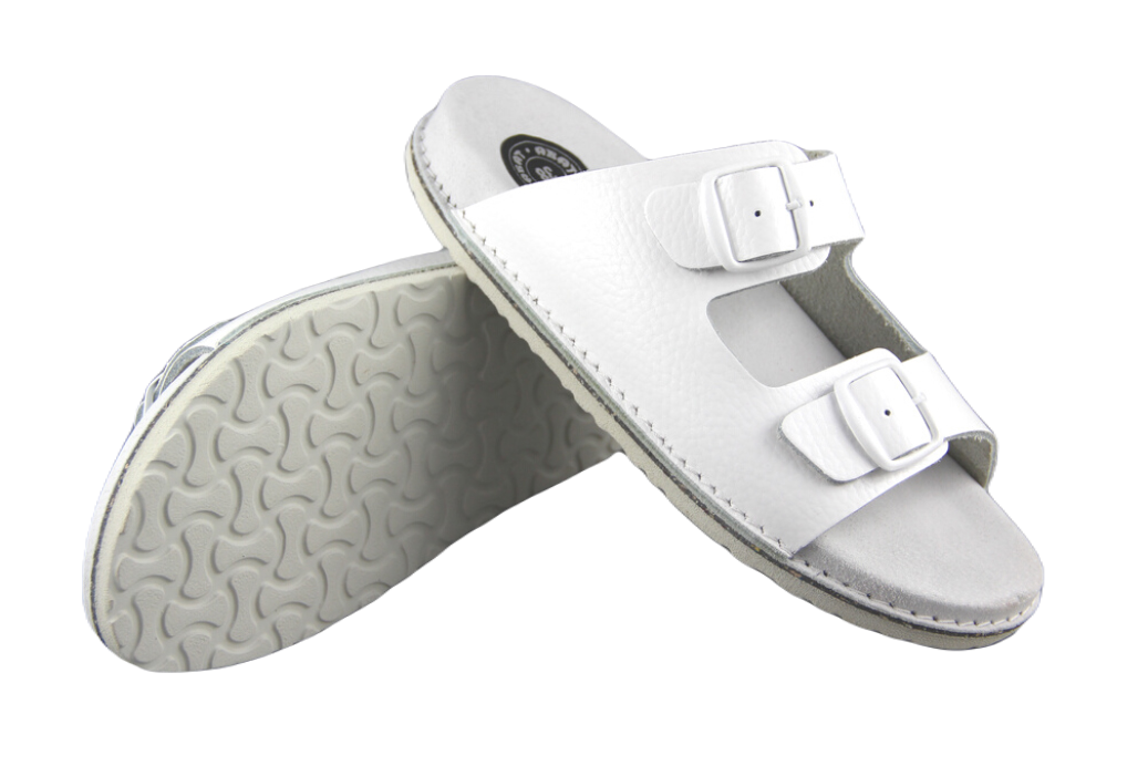 ABAT ROZM. 43 BIAŁE Klapki damsko-męskie, dwa paski regulowane sprzączkami