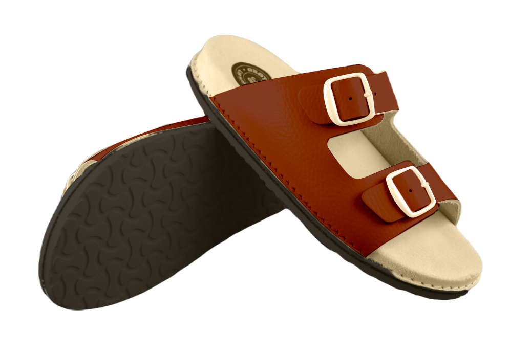 ABAT ROZM. 45 BRĄZOWE Klapki damsko-męskie, dwa paski regulowane sprzączkami