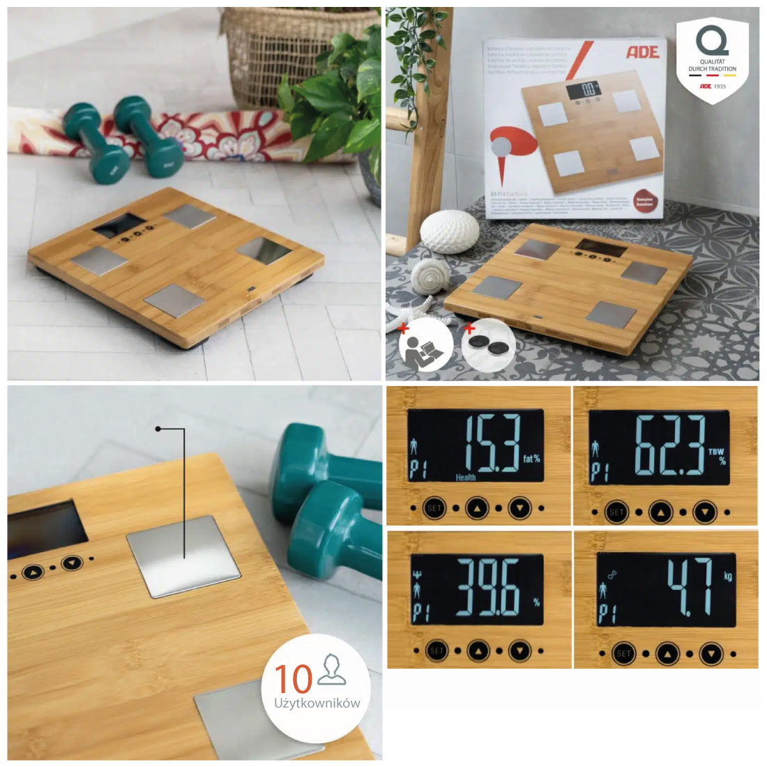 ADE BA914 BARBARA Waga cyfrowa bambusowa, analiza składu ciała i pamięć 10 osób