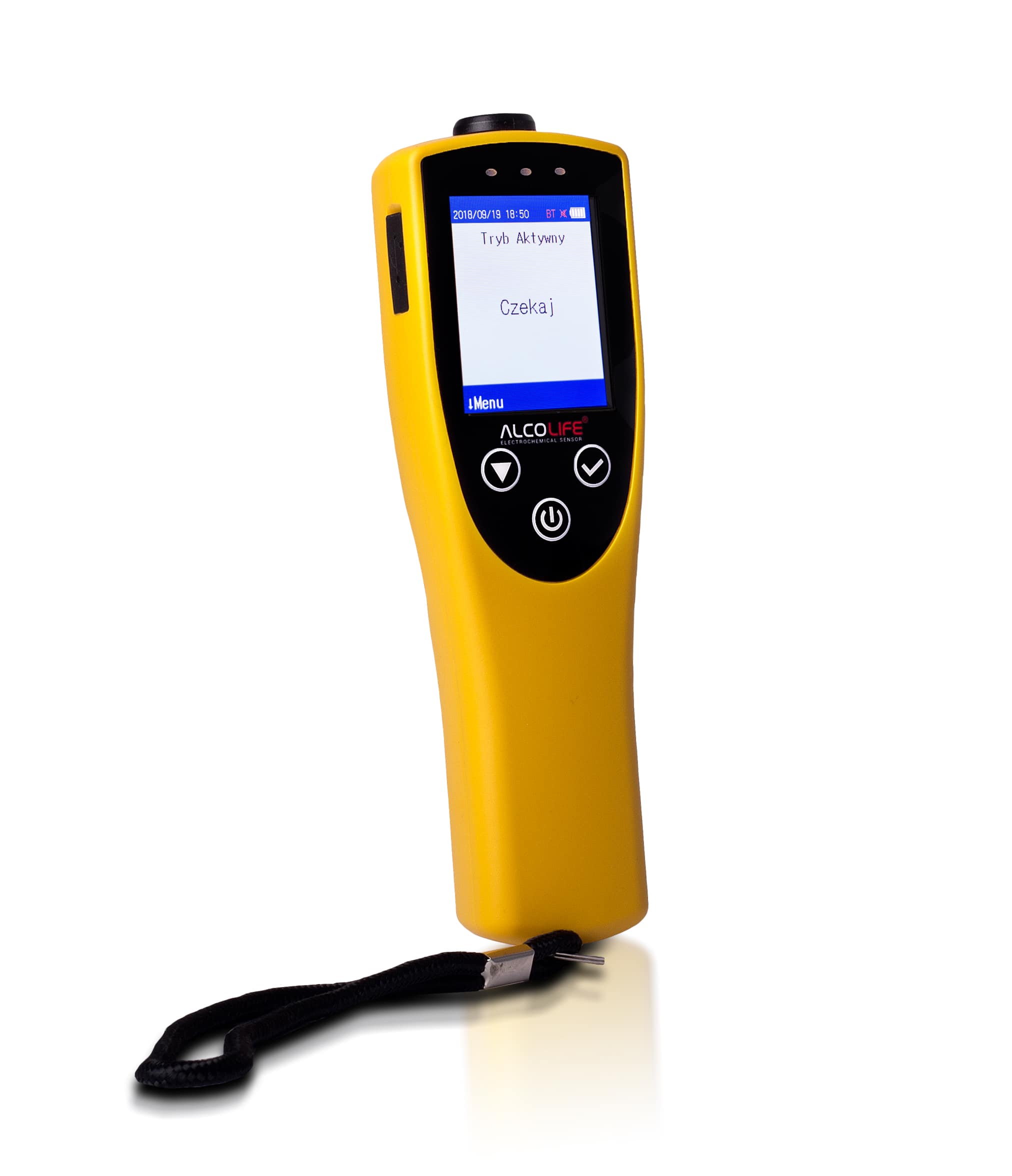 Alkomat policyjny Alcolife F9 – Sensor elektrochemiczny, technologia stosowana w alkomatach policyjnych, – 2 w 1 – użytkownik za pomocą jednego urządzenia ma możliwość wykonania testów bezustnikowych i ustnikowych, – Zapewnia stabilny i wiarygodny sposób pomiaru (pomiary dowodowe, ustnikowe), – Bardzo szybki pomiar bezustnikowy, test trwa tylko 2 sek, – Możliwość badania na obecność alkoholu w pojemnikach z płynami, – Możliwość wyboru jednostki pomiarowej np. mg/L, mg/100mL, ‰ & %, – Idealny stosunek ceny, do jakości produktu, – Pokazuje wyniki na wyświetlaczu, – Przygotowanie do kolejnego pomiaru 2 sek. – Pamięć pomiarów (możliwość zapisu do 28 000 wyników), – Dedykowane oprogramowanie do pobierania danych z pomiarów do komputera, – Możliwość podłączenia drukarki Bluetooth (opcja dodatkowo płatna), – Trzy kolorowy wyświetlacz, – Data i czas, – System kontroli długości pomiaru sygnalizowany dźwiękiem, – Pokrowiec na alkomat, – Funkcja automatycznego wyłączania po 3 minutach bezczynności, – Serwis gwarancyjny i pogwarancyjny, – Wysoka dokładność pomiaru, – 3 lata gwarancji na alkomat, – 2 lata gwarancji na sensor. Ultranowoczesny alkomat Alkomat Alcolife F9 to jedno z najszybszych i najbardziej nowoczesnych urządzeń na rynku. Dzięki połączeniu dwóch technologii FastCell i FuelCell alkomat staje się narzędziem wielozadaniowym. Urządzenie ma możliwość wykonania 2 rodzajów badań – bezustnikowych, przesiewowych i tradycyjnych, ustnikowych, dowodowych*. * Po uzyskaniu świadectwa wzorcowania wydawanego przez akredytowane laboratorium wzorcujące alkomat Alcolife F9 będzie alkomatem dowodowym. Wydruki z drukarki mogą stanowić jako materiał dowodowy w sprawach sądowych (wzorcowanie jest usługą dodatkowo płatną, więcej informacji u sprzedawcy). Szybki i wydajny Niezwykle wydajny, szybki i nowoczesny europejski sensor elektrochemiczny (pomiar bezustnikowy trwa tylko 2 sek.) powoduje, iż alkomat Alcolife F9 w krótkim czasie przebada bardzo dużą grupę ludzi. Sprawdzi się w instytucjach rządowych Urządzenie dedykowane do zastosowań firmowych, dla instytucji rządowych i pozarządowych, łączy funkcję badań szybkich, bezustnikowych oraz precyzyjnych badań ustnikowych. Po przeprowadzonym badaniu bezustnikowym (które w przypadku ogólnodostępnych alkomatów bezustnikowych nie jest tak precyzyjne jak badanie ustnikowe), właściciel alkomatu może wykonać precyzyjny test ustnikowy, z którego wydrukować (opcjonalnie drukarka). Czytelny wynik badania Dzięki dołączonemu oprogramowaniu (wersja PL), użytkownik z łatwością zaimportuje i wydrukuje wszystkie dane, również z komputera. Alkomat Alcolife F9 (policyjny) ma możliwość zapisu 28 000 testów z pomiarów. Alkomat Alcolife F9 posiada duży, czytelny 3 kolorowy wyświetlacz. W zależności od wyniku z badania, zmienia on swój kolor na zielony, żółty lub czerwony prezentując przy tym konkretne wyniki w formie liczb. Ta funkcja pozwala no dokładne sprawdzenie ile alkoholu w wydychanym powietrzu posiada osoba badana. Pomiar bezustnikowy: komunikat „Alkohol” lub „Brak Alkoholu” (wyświetlacz zielony, czerwony). Pomiar ustnikowy: alkomat prezentuje wyniki na wyświetlaczu (np. 0.00 promila, 0.20 promila, do 9.00 promila). Wyświetlacz, kolor zielony: wynik z pomiaru od 0.00 – 0.10 promila Wyświetlacz, kolor żółty: wynik z pomiaru od 0.11 – 0.19 promila Wyświetlacz, kolor czerwony: wynik z pomiaru od 0.20 – 9.00 promila System do badania osób nieprzytomnych Alkomat posiada również system umożliwiający badanie osób nieprzytomnych. Jest to funkcja szczególnie przydatna, w przypadku osób u których występuje problem z wdmuchnięciem minimalnej ilości powietrza. Alkomat może również wykonać test na obecność alkoholu w pojemnikach z płynami. Kalibracja alkomatu: Użytkownik otrzymuje urządzenie skalibrowane i gotowe do pracy. Każdy alkomat, jako urządzenie pomiarowe w trakcie normalnego użytkowania ulega rozkalibrowaniu. Co jakiś czas, w zależności od modelu, częstotliwości i intensywności użytkowania, alkomat taki wymaga kalibracji serwisowej w specjalnie do tego przygotowanym serwisie. Zalecana kalibracja alkomatu Alcolife powinna zostać zrealizowana pomiędzy 6 a 12 miesiącem jego użytkowania. Kalibracja alkomatu wykonywana jest przy wykorzystaniu najnowocześniejszych symulatorów firmy Guth Laboratories. Kalibracja wykonana za pomocą tych urządzeń gwarantuje precyzje i poprawność działania alkomatu. Program darmowej kalibracji: w okresie do 12 miesięcy od daty zakupu alkomatu, użytkownik otrzymuje nielimitowana, bezpłatną kalibracje do zrealizowania w serwisie Alcolife. Szczegóły i zgłoszenie darmowej kalibracji na stronie firmowej alcolife.pl Kalibracja płatna: dotyczy wszystkich alkomatów, których data zakupu jest starsza niż 1 rok. Koszt i szczegóły zgłoszenia kalibracji alkomatu na naszej stronie firmowej alcolife.pl Dane techniczne: – Wyświetlacz: cyfrowy wyświetlacz LCD z trójkolorowym podświetleniem, – Funkcja szybkiego badania przesiewowego zawartości alkoholu z czujnikiem elektrochemicznym, – Zasilanie:: 4*1.5V AAA Baterie alkaiczne, – Wyświetlacz: TFT 2.4” TFT QVGA, – Klawisze: 3 klawisze funkcyjne, – Ustawienie jednostek: mg/L, mg/100mL、‰ & %, – Automatyczne monitorowanie przepływ powietrza, – Środowisko działania: Od -5℃ do +45 ℃, – Warunki długotrwałego przechowywania: Temperatura: 0° C to +55° C. Wilgotność względna: 30 do 90%, – Zakres wyświetlacza: 0.00-9.00 ‰ BAC lub 0.00-4.5mg/L, – Zatwierdzenie Agencji: CE. Zestaw zawiera: Alkomat Alcolife F9, Etui na zamek, Instrukcja w języku polskim, Karta gwarancyjna, 4 baterie AAA, 6 ustników wielorazowego użytku, Pasek na rękę.