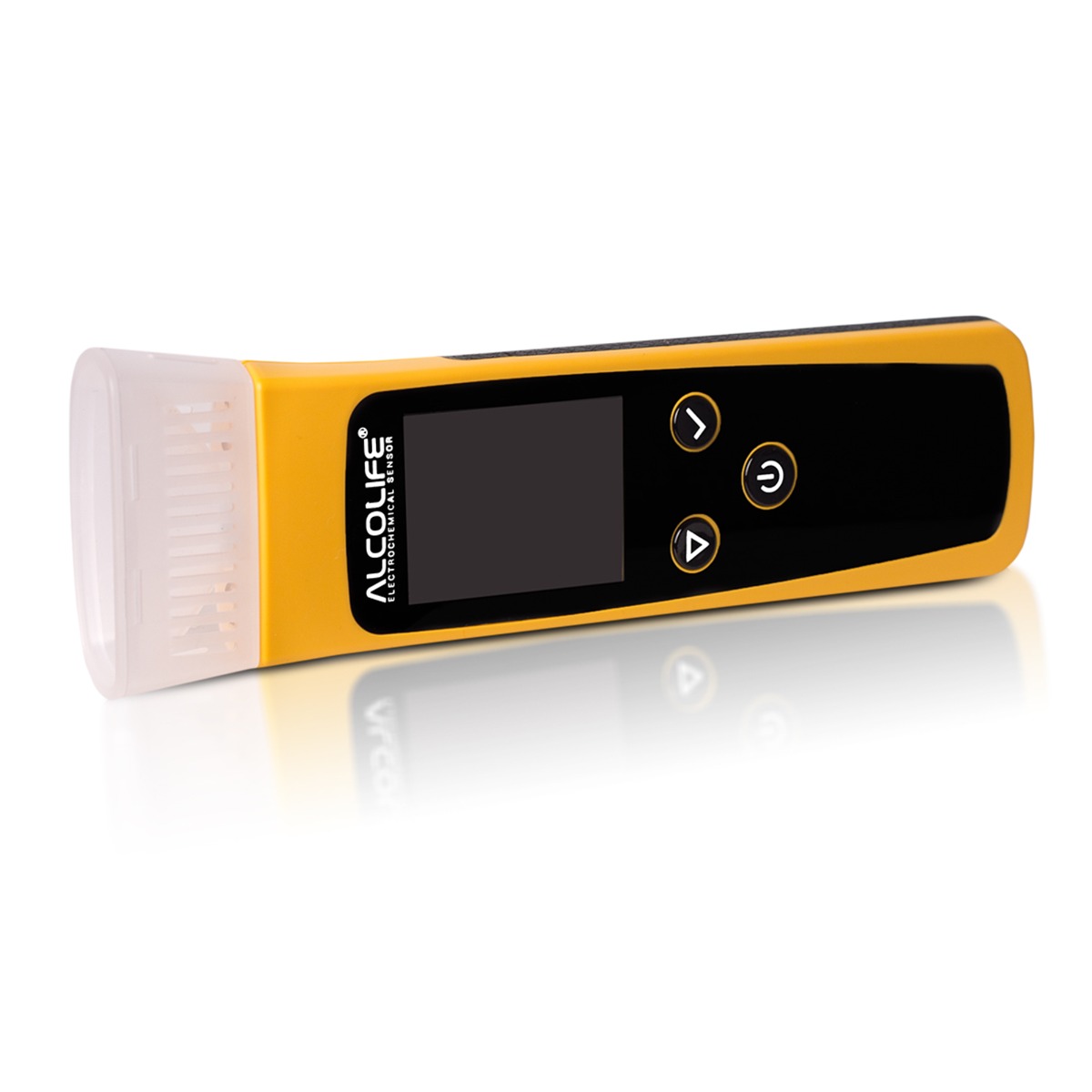 Alkomat ALCOLIFE GO jest przeznaczony do badań bezustnikowych dużych grup ludzi. Idealny do szybkich badań przesiewowych, jest używany przez firmy budowlane, transportowe, produkcyjne oraz służby publiczne. Nowoczesny europejski sensor elektrochemiczny pozwala na przeprowadzenie pomiaru bezustnikowego w zaledwie 3 sekundy, umożliwiając badanie ponad pół tysiąca osób na godzinę. ALCOLIFE GO wyposażony jest w duży, czytelny wyświetlacz o trzech kolorach. W zależności od wyniku badania, zmienia on kolor na zielony, biały lub czerwony, wyświetlając dokładne wyniki w formie liczb. To rozwiązanie umożliwia szybką i łatwą interpretację wyników, pokazując dokładnie ile alkoholu zawiera wydychane powietrze. Ten model alkomatu ma funkcję zapisu do 28 000 testów z pomiarów. Dane te mogą być zaimportowane do komputera przy użyciu dedykowanego oprogramowania (w wersji polskiej) lub wydrukowane na drukarce Bluetooth (dostępnej jako dodatkowy zakup). Zakres danych prezentowanych na wydruku zawiera m.in. wynik z pomiaru, datę, nazwę firmy lub właściciela, miejscowość, adres oraz imię i nazwisko osoby testowanej. ALCOLIFE GO oferuje darmową, nielimitowaną kalibrację przez pierwszy rok użytkowania. Regularna kalibracja jest kluczowa, aby zapewnić poprawność i precyzję wyników alkomatu. Aby utrzymać jakość pomiarów, należy przeprowadzać kalibracje zgodnie z zaleceniami producenta. To innowacyjne rozwiązanie jest szczególnie użyteczne dla firm Odpowiedni dla organizacji które muszą regularnie przeprowadzać badania przesiewowe na obecność alkoholu. Dzięki szybkim pomiarom, dużej pojemności pamięci i elastycznym opcjom drukowania, ALCOLIFE GO jest idealnym narzędziem do utrzymania bezpieczeństwa i zgodności z regulacjami. Alkomat prezentuje wyniki na wyświetlaczu (np. 0.00 promila, 0.20 promila, 2.00 promile) Alkomat posiada system umożliwiający badanie osób nieprzytomnych. Jest to funkcja szczególnie przydatna, w przypadku osób u których występuje problem z wdmuchnięciem minimalnej ilości powietrza. Alkomat może również wykonać test na obecność alkoholu w pojemnikach z płynami Zalety alkomatu ALCOLIFE GO Sensor elektrochemiczny: Technologia stosowana w alkomatach policyjnych, zapewniająca wysoką precyzję pomiarów. Szybkość pomiaru: Bezustnikowy test trwa tylko 3-4 sekundy, co jest bardzo wydajne. Magnes do przyczepienia: Alkomat można łatwo umieścić na metalowych powierzchniach, co ułatwia przechowywanie i dostępność. Wielofunkcyjność: Możliwość badania na obecność alkoholu w pojemnikach z płynami, a także zmiany jednostki pomiarowej (mg/L, mg/100mL, ‰, %). Doskonały stosunek jakości do ceny: Produkt oferuje wiele funkcji w atrakcyjnej cenie. Dodatkowe Funkcje Wyświetlacz: Duży, czytelny LCD z trójkolorowym podświetleniem. Wyniki są wyraźnie wyświetlane. Pamięć pomiarów: Alkomat umożliwia zapisanie do 28 000 wyników pomiarów, co pozwala na późniejsze analizy. Kompatybilność z drukarką Bluetooth: Opcja dodatkowo płatna, umożliwia drukowanie wyników pomiarów. Oprogramowanie dedykowane: Pozwala na pobieranie danych z alkomatu do komputera w celu przechowywania i analizy. Automatyczne wyłączanie: Funkcja oszczędzająca energię, wyłącza urządzenie po 3 minutach bezczynności. Dodatkowe Korzyści System kontroli długości pomiaru: Długość pomiaru jest sygnalizowana dźwiękiem, co pomaga w prawidłowym przeprowadzeniu testu. Pokrowiec i pasek na rękę: Ułatwia przechowywanie i przenoszenie alkomatu. Gwarancja: 3 lata na alkomat i 2 lata na sensor, zapewniające spokój użytkownika. Nielimitowana kalibracja: Pierwszy rok kalibracji jest darmowy, co zapewnia precyzyjne wyniki przez długi czas.
