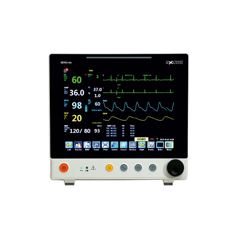 Rozwiązania do monitorowania pacjenta Axcent Medical Przenośne rozwiązania do monitorowania pacjenta od Axcent Medical. Systemy monitorowania z funkcjami, które są wykorzystywane do diagnozowania krytycznie chorego pacjenta. Platformy do podstawowego i zaawansowanego monitorowania pacjenta. Axcent Medical CETUS XL Wieloparametrowy monitor pacjenta do użycia na oddziałach intensywnej opieki medycznej, CCU i OR Dotykowy ekran TFT LCD 15,6 ” Obudowa z aluminium Konstrukcja bez wentylatora 10 kanałów, analiza do 12 odprowadzeń EKG Przydatne obliczenia (hemodynamiczne, dawki leku, natlenienie, wentylacja) Obsługa SpO2 PVI i PI, niska perfuzja 0,2% Moduł BISx, opcjonalny moduł NMT Przewodowy / bezprzewodowy CMS, obsługuje protokół HL7 do HIS Modulacja tonacji impulsu SpO2 (Pitch Tone) Obsługa zewnętrznego wyświetlacza VGA Graficzny i tabelaryczny przegląd trendów (120 godzin) 48 godzinny pełny przegląd dla każdego pacjenta Konfiguracja: EKG, SpO2, NIBP, RESP, akumulator litowo-jonowy. Specyfikacja techniczna: Ekran: 15.6”-calowy kolorowy ekran dotykowy TFT, rozdzielczość: 1366 x 768; Liczba śladów: 10 przebiegów. I / O LAN: 1 standardowy port RJ45 WLAN: IEEE 802.11b / g / n USB: 2 złącza USB SD: 1 gniazdo karty SD VGA: 1 złącze monitora VGA Wyjście: 1 złącze dla wezwania pielęgniarki, wyjście analogowe Defib Sync EKG Rodzaj 3 odprowadzenia, 5 odprowadzeń, 12 odprowadzeń Przebieg EKG: 2 kanały, 7 kanałów, 12 kanałów Czułość wyświetlacza: 2,5 mm / mV (× 0,25), 5 mm / mV (× 0,5), 10 mm / mV (× 1,0), 20 mm / mV (× 2,0) Prędkość przesuwu fali: 6,25 mm / s, 12,5 mm / s, 25 mm / s, 50 mm / s Pasmo Tryb diagnostyczny: 0,05 Hz ~ 100 Hz Tryb monitorowania: 0,5 Hz ~ 40 Hz Tryb chirurgiczny: 1 Hz ~ 20 Hz Tryb silnego filtra: 5 Hz ~ 20 Hz CMRR> 100dB Wycięcie: Filtr wycinający 50/60 Hz można włączyć lub wyłączyć Różnicowa impedancja wejściowa> 5 MΩ Zakres napięcia polaryzacji elektrody: ± 400 mV Wyjściowy czas powrotu do zdrowia