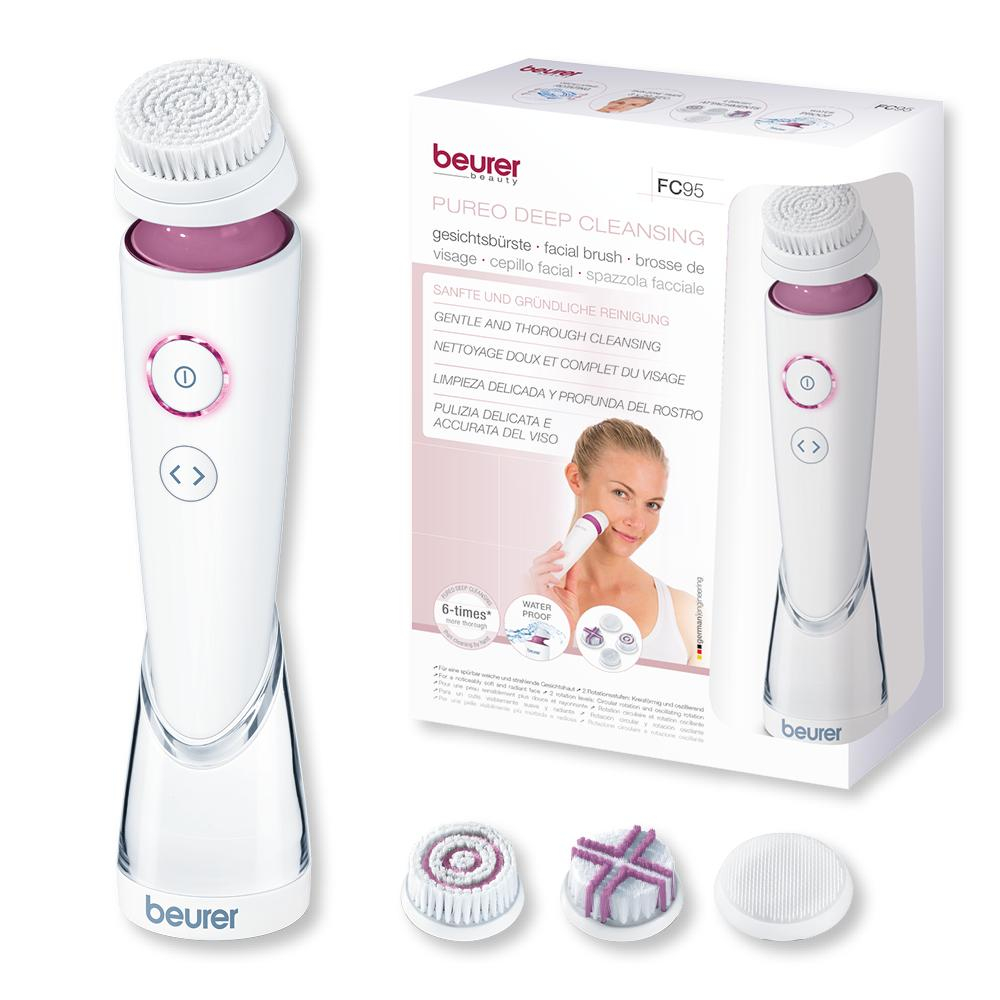 Szczoteczka do twarzy BEURER FC 95 szybkie i dokładne czyszczenie porów Beurer FC 95 to urządzenie do czyszczenia twarzy, które zapewnia delikatne czyszczenie pobudzając krążenie krwi. Ta nowoczesna szczoteczka elektryczna do twarzy jednocześnie stymuluje oraz pobudza krążenie krwi. Jeżeli jest stosowana regularnie sprawia, że skóra wygląda jaśniej i zdrowiej. Jest to produkt, który nadaje się do każdego rodzaju skóry, nawet tej najbardziej wrażliwej. Zalety szczoteczki BEURER FC 95 6 razy skuteczniejsze oczyszczanie niż manualne Delikatne i dokładne codzienne oczyszczanie skóry twarzy zapewniające efekt delikatnej oraz lśniącej skóry Do każdego rodzaju cery: tłusta, sucha, jak i mieszana 2 rodzaje obrotów: koliste i oscylacyjne 3 stopnie prędkości 4 nasadki zapewniające wszechstronne zastosowanie :do cery normalnej, do cery wrażliwej, do głębokiego oczyszczania porów, do peelingu-delikatnego usuwania zbędnego naskórka Minutnik – zatrzymuje się co 20 sekund na jedną sekundę, aby zasygnalizować konieczność zmiany strefy czyszczenia Wodoodporność (IPX 7) umożliwiająca stosowanie pod prysznicem i w wannie Ergonomiczny kształt Podświetlony włącznik/wyłącznik wskazujący tryb pracy Wskazanie stanu naładowania akumulatora w przypadku prawie wyczerpania Zasilanie akumulatorowe Wymiary 18,5 x 4 x 4 cm Waga 120 g.