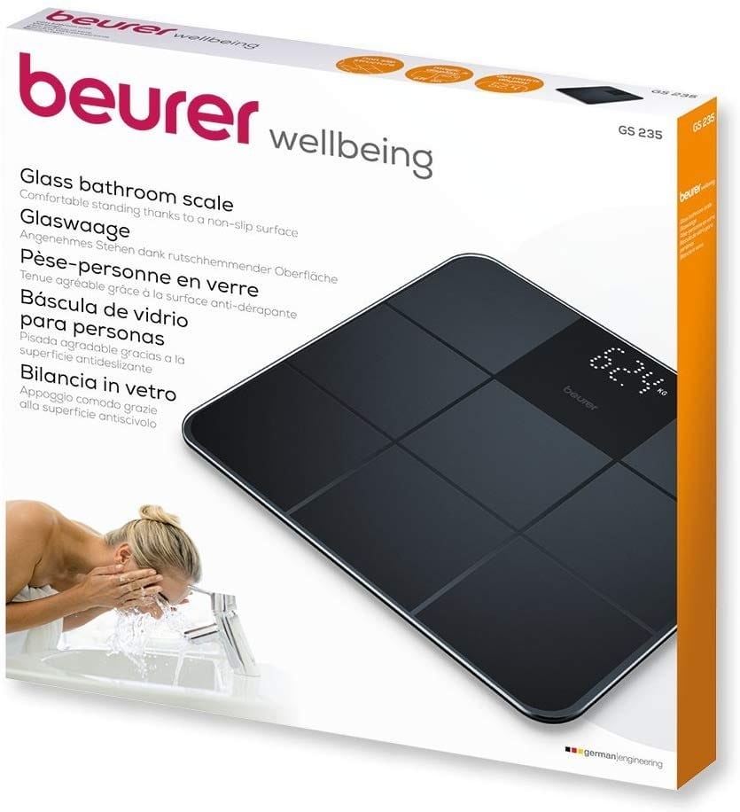 BEURER GS 235 BLACK Waga szklana elegancka, antypoślizgowa, LED, max 180 kg