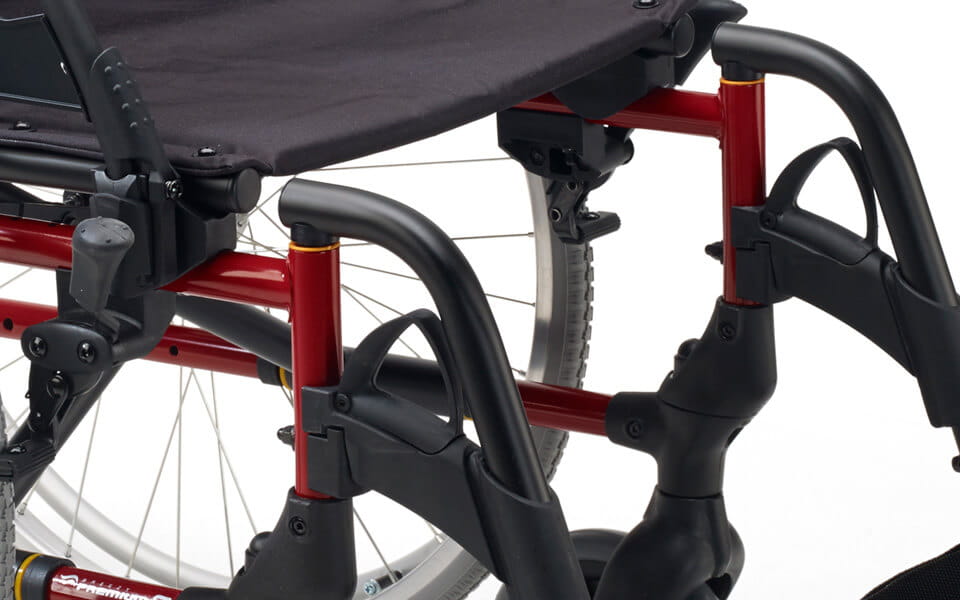 Wyjątkowa konstrukcja przedniej ramy i położenia tylnego koła daje długość 76,5 cm bez podnóżków. Dzięki temu wózek może manewrować w ograniczonych przestrzeniach.