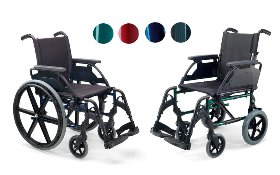 Wózek dostępny jest w 4 kolorach (butelkowa zieleń, rubinowa czerwień, granatowy, szary metalizowany) i posiada szeroki wybór akcesoriów (anatomicznie ukształtowane siedzisko i oparcie, oddychająca tapicerka, regulowane aluminiowe platformy podnóżka, podnoszone podnóżki ELR, płyta podnóżka, zagłówek, hamulce bębnowe, uchwyt na kroplówkę, uchwyt na kule, przedłużka blokady hamulca, oś dla amputantów, koła anty-wywrotne, koła transportowe, mocowania na butlę z tlenem, stolik, pas, plecak).