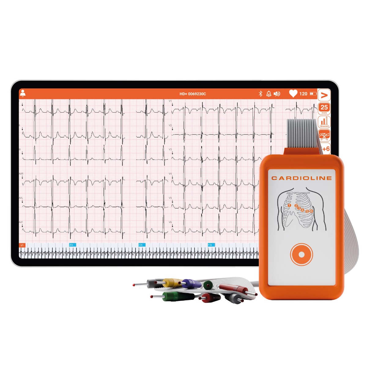 HD+ wyposażony jest w standardowy przewód EKG z 12 odprowadzeniami do odbierania sygnału fizjologicznego pacjenta. Umożliwia to pacjentom bycie ambulatoryjnymi, co czyni go odpowiednim zarówno dla dorosłych, jak i dzieci.