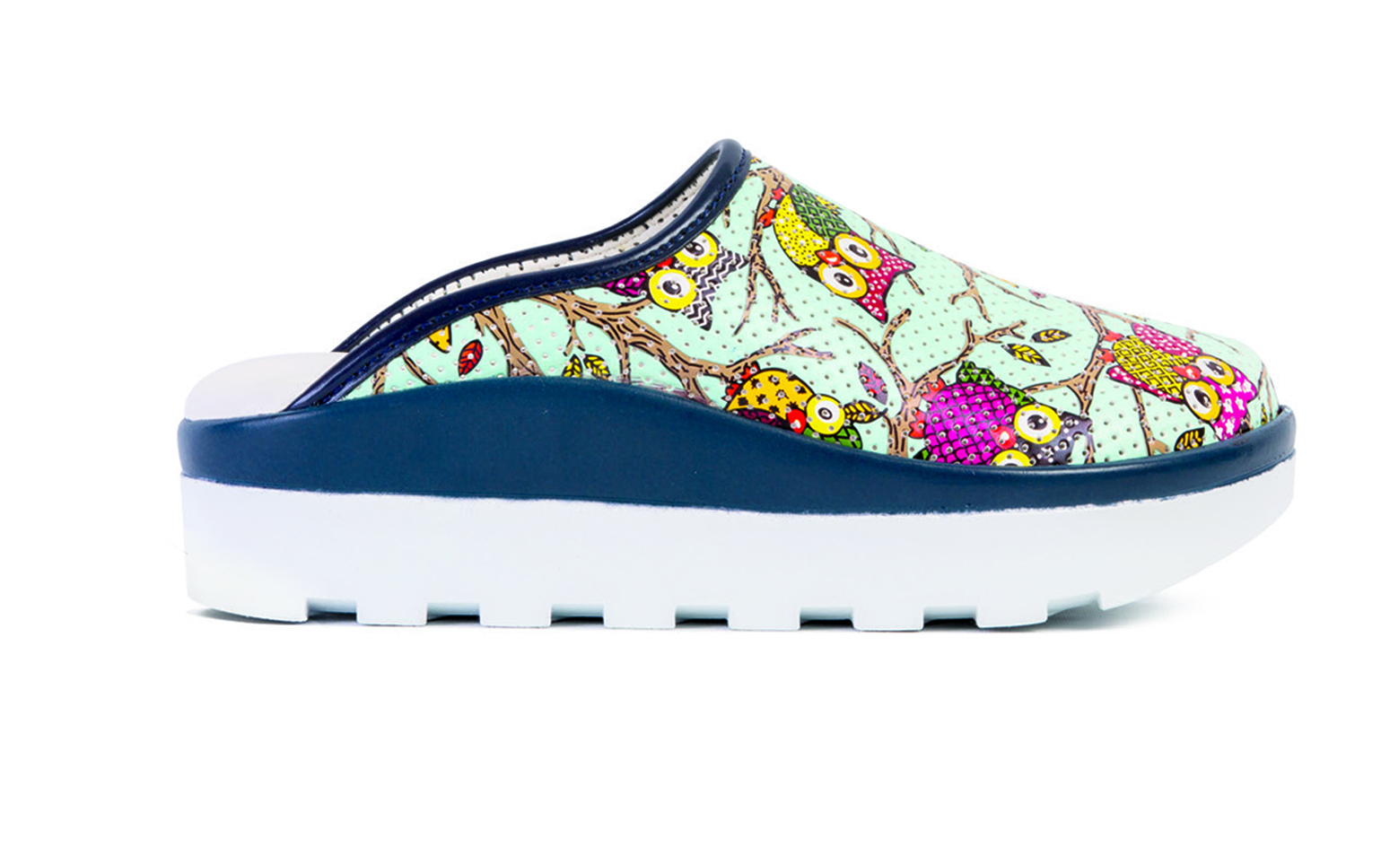 CARINE LUX SABO ROZM. 36 Trepy dla medyków, chodaki perforacja, sowa/błękit, 053