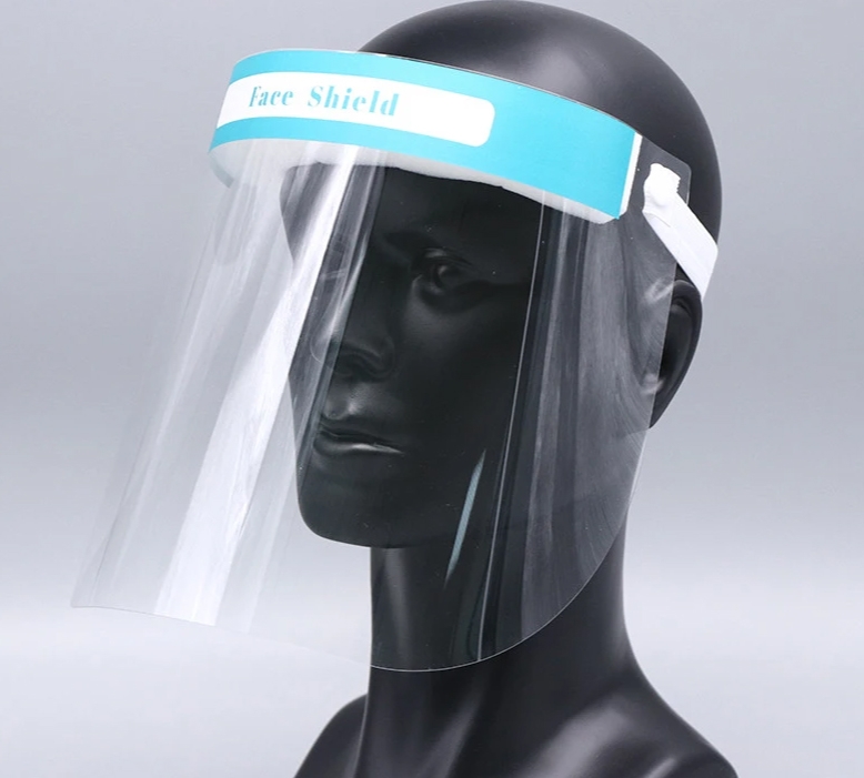 Osłona twarzy Z daszkiem z poliwęglanu o wymiarach 8 x 12 x 1 mm. Posiada regulowany pasek nylon i nakrycie głowy.