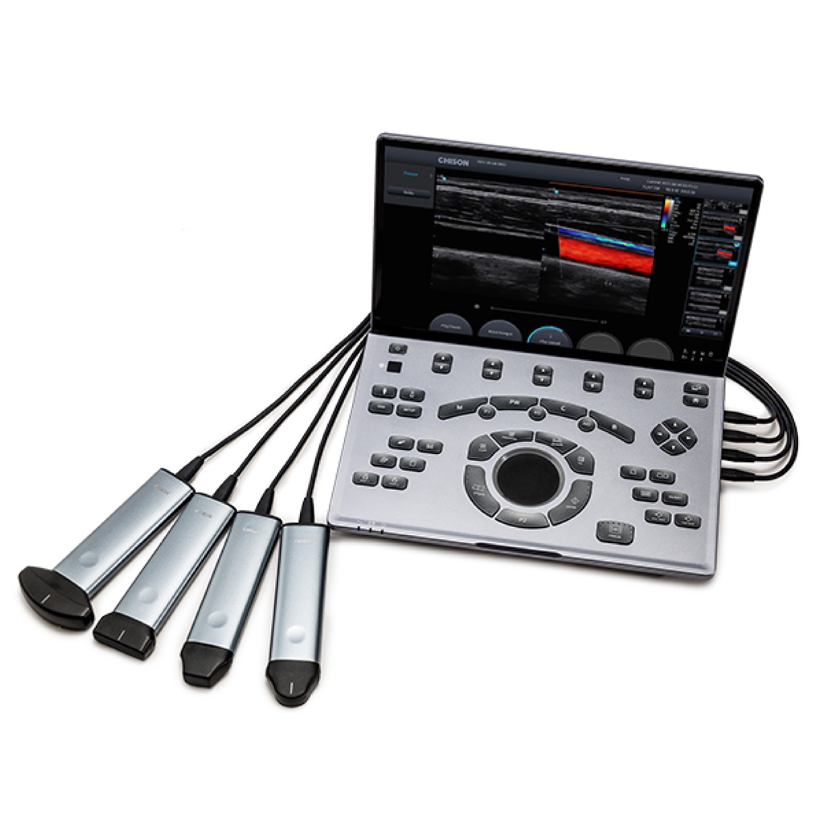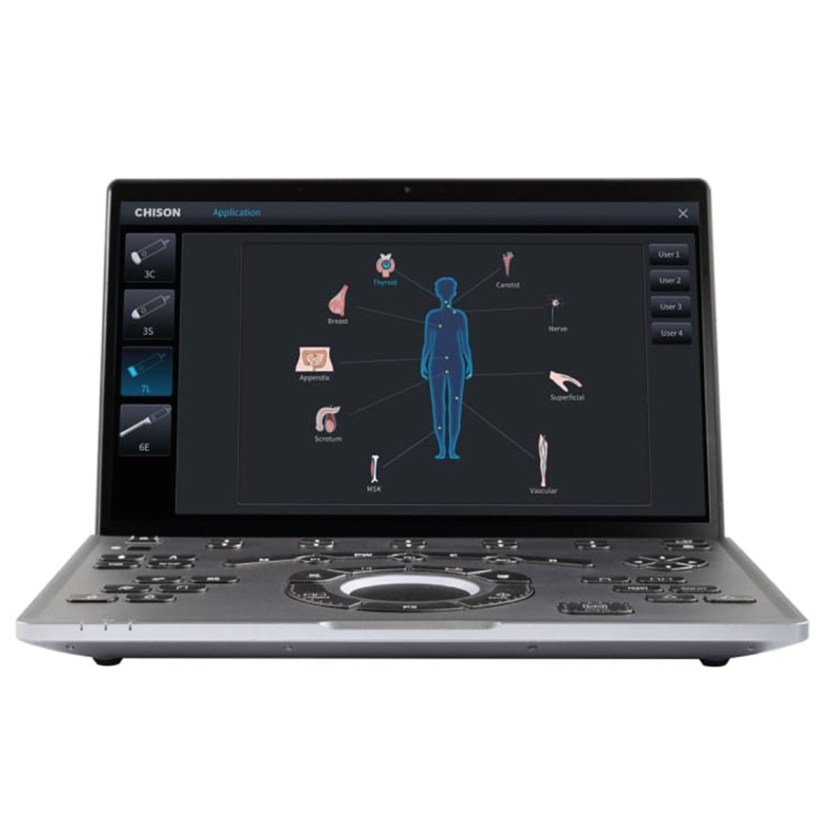 SonoAir 70 marki CHISON to przenośny ultrasonograf wyglądem przypominający laptopa. Zakres dostawy obejmuje sondę liniową i konweksową. Urządzenie wyposażone jest w akumulator, którego czas pracy ciągłej wynosi 180 minut. Dodatkowo aparat USG SonoAir 70 posiada panel sterowania 3D oraz ekran dotykowy umożliwiający intuicyjną obsługę. Urządzenie jest gotowe do pracy po 25 sekundach, a w trybie czuwania po 3 sekundach.
