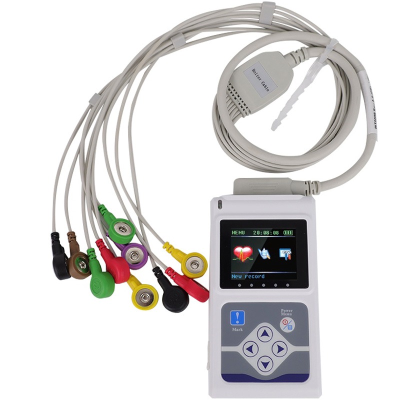12-odprowadzeniowy elektrokardiograf EKG300GT to elektrokardiograf, który może zbierać 12-odprowadzeniowy sygnał EKG jednocześnie i drukować przebieg za pomocą systemu druku termicznego. Urządzenie może być obsługiwane zarówno za pomocą ekranu dotykowego, jak i klawiszy. Funkcja nagrywanie i wyświetlanie przebiegu EKG w trybie AUTO / Manual, pomiaru i diagnozowania parametrów przebiegu EKG automatycznie, monitując o “Lead off” i “Brak papieru”, Interfejs wielojęzyczny, zarządzanie bazą danych przypadków Elektrokardiograf – cechy: • Duży, kolorowy wyświetlacz LCD o przekątnej 3,5″ z wieloma parametrami wyświetlanymi jednocześnie,• pobieranie oraz wyświetlanie na ekranie 12 odprowadzeń jednocześnie,• ustawienia trybu pracy: automatyczny, manualny, rytmu,• detekcja i wyświetlanie braku odprowadzeń (LEAD-OFF),• kompletny zespół filtrów cyfrowych, korekta przesunięcia linii bazowej, filtr AC, filtr zakłóceń EM,• automatyczna regulowana linia bazowa, optymalizacja pozycji drukowania,• wbudowana wysokiej rozdzielczości drukarka termiczna (papier 80 mm),• wbudowana bateria litowa podtrzymuje prace aparatu przy braku zasilania 230V do 4 godzin,• zapis do pamięci do 1000 cyfrowych rejestracji EKG,• obsługa wydruku w trybie (auto) 4, 3+1(rytm), 3, 2+1(rytm), 2, 3(odpr koń.) + 2(odpr pierś.) + 1(rytm),• 3 (odpr koń.) + 2(odpr pierś.), rytm 4, rytm 3, rytm 2, manualnym ,• wymiana danych portem USB,• automatyczne pomiary parametrów EKG,• całkowicie polski interfejs obsługi urządzenia,• pamięć: 1000 badań,• zasilanie 230V/50Hz oraz wbudowany akumulator• papier: rolka 80 mm/20 m. Elektrokardiograf z funkcją automatycznej analizy Posiada funkcję automatycznej analizy i automatycznej diagnostyki rutynowych parametrów EKG. Wystarczy podać wyniki pomiarów aby otrzymać wnioski z automatycznej diagnozy dla HR, P-R interwału, czasu trwania P, czasu trwania QRS, czasu trwania T, q-t interwału, Q-Tc, Oś P, osi QRS, Oś T, R(V5), S(V1), R(V5)+S(V1), itp.