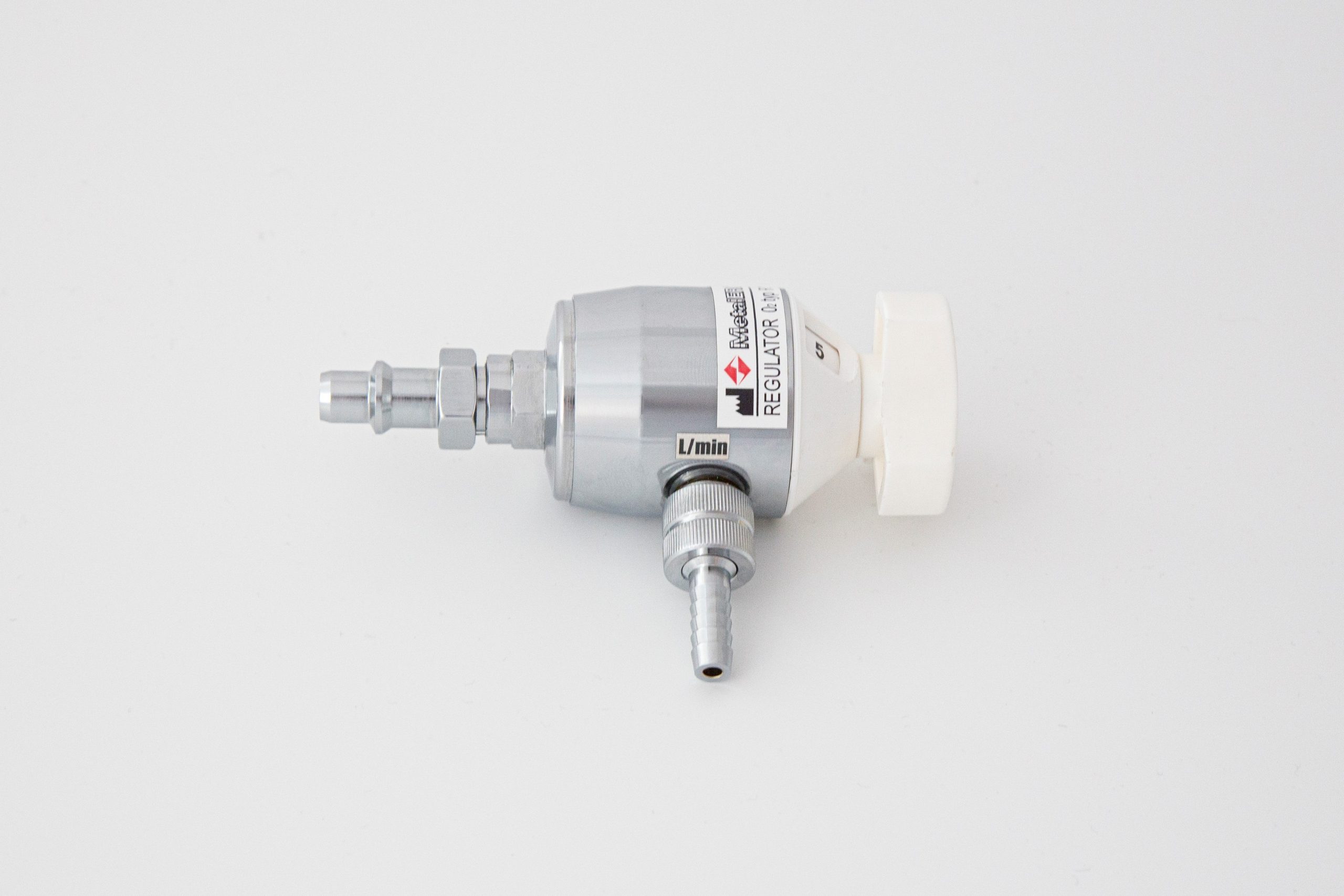DOZOWNIK / REGULATOR TYPU R100 Z WEJŚCIEM DIN I WYJŚCIEM ZAKOŃCZONYM GWINTEM 9/16 Z KRÓĆCEM W ZESTAWIE Przewidziany do pracy w sieci tlenu medycznego, posiadającej wyjścia w postaci gniazd typu „DIN”.DOZOWNIK / REGULATOR TYPU R100 z przykęconym króćcem służy do tlenoterapii bez nawilżacza.Po odkręceniu króćca możliwość przykręcenia pezpośrednio butelki nawilżacza gwint 9/16Dane techniczne: Zakres pracy: 0,4 do 0,5 [MPa], Zakres regulacji pokrętłem 0-15 l/min. (opcjonalnie można zamówić 0-25l/min.)Przeglądy serwisowe powinny być wykonywane zgodnie z zaleceniami producenta umieszczonymi w instrukcji obsługi.