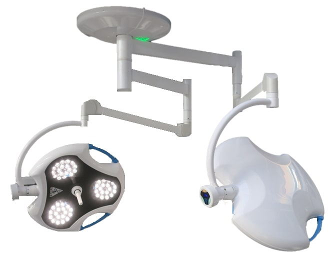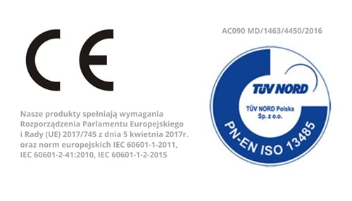 Lampa operacyjna HELIOS 160 wykorzystuje jako źródło światła białe diody LED. Lampa przeznaczona jest do zastosowania w salach operacyjnych. Lampa operacyjna HELIOS 160 składa się z trzech niezależnych paneli świetlnych, w których znajdują się łącznie 54 diody, umożliwiające osiągnięcie natężenia oświetlenia 160 000 lux. Pozycjonowanie lampy umożliwiają: uchwyt sterylny umieszczony w centrum kopuły, oraz dwa uchwyty “brudne” znajdujące się na jej obwodzie. Uchwyt sterylny służy również do regulacji średnicy plamy świetlnej, natomiast regulację natężenia oświetlenia umożliwia panel sterujący, umieszczony na ramieniu kopuły. Lampy z serii HELIOS występują w wersjach: sufitowej, ściennej oraz statywowej (w tym z zasilaniem akumulatorowym). Panel sterowania – wyposażony w przycisk włącz/wyłącz oraz regulację natężenia światła. Sterylny uchwyt umożliwiający ustawianie ostrości plamy świetlnej w polu operacyjnym. Trzy oddzielne źródła światła przewidziane na wypadek uszkodzenia jednego z nich – wówczas pozostałe dwa źródła zapewniają wystarczające oświetlenie. W kopule nie przewidziano żadnych zewnętrznych wkrętów, ani innych elementów mocujących. Gładka powierzchnia i dopasowane części umożliwiają utrzymanie lampy w czystości. DANE TECHNICZNETyp oprawy – HELIOS 160 Napięcie zasilania – 24V DC Natężenie w odległości 1m – 160 000 luksów Zakres natężeni regulacjia oświetlenia – 25 ÷ 100% Wskaźnik oddawania barw Ra – 96 Temperatura barwowa – 4400 k Średnica pola roboczego d10 – 210 mm Średnica pola roboczego d50 – 105 mm Regulowana średnica pola roboczego – tak Przyrost temperatury w okolicy głowy chirurga < 1°C Wgłębność oświetlenia L1+L2 (20%) – 68 cm (60%) – 47 cm energii przez Zużycie oświetleniową – 55 W Klasa izolacji – I Stopień ochrony obudowy – IP 43