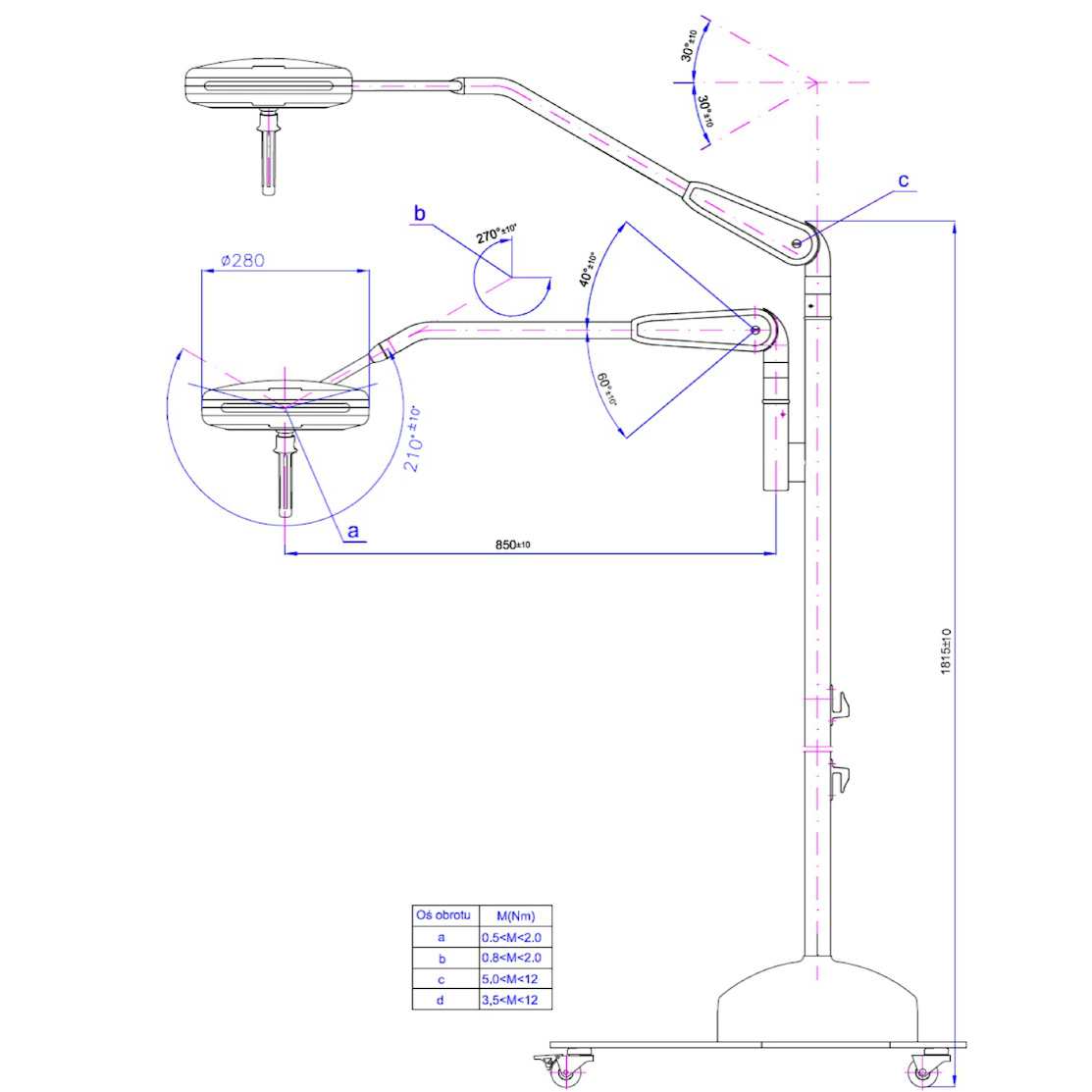 Lampa zabiegowa Solis 60 – Natężenie światła 60 tys lux. Właściwości SOLIS 60 czynią z niej unikalną lampę. Natężenie światła z odległości 1m to 60 000 lux. Lampy zabiegowe serii SOLIS 60 są przeznaczone do stosowania jako podstawowe źródło oświetlenia w diagnostyce i przy zabiegach w gabinetach lekarskich i zabiegowych, ale także w precyzyjnych operacjach intensywnej terapii, salach dla rekonwalescencji oraz oddziałach pierwszej pomocy. Lampa SOLIS 60 posiada kolisty reflektor zaprojektowany w celu dokładnego oświetlenia pola roboczego oraz wyeliminowania jakichkolwiek cieni. Lampa ta posiada nadający się do sterylizacji, poręczny uchwyt, który ułatwia ustawienie pozycji kopuły. Korpus oświetlający ultra płaski, by ni utrudniał pracy operatorowi, wyposażony jest w wytrzymały poliwęglanowy ekran, który zapewnia ochronę przed możliwymi przypadkowymi uderzeniami. Ergonomiczna budowa lampy Położenie lampy SOLIS 60 można z łatwością zmienić dzięki właściwością obracania się wokół czterech osi: konstrukcja zapewnia zdolność zataczania pełnego okręgu bez zatrzymań. Ramię porusza się pionowo dzięki skompensowanemu za pomocą sprężyny urządzeniu równoważącemu. Reflektor może być obracany wzdłuż osi pionowej i poziomej. Dzięki innowacyjnemu rozwiązaniu „bezdotykowego” sterowania operator może nastawić natężenie światła stosowanie do własnych potrzeb. Bezdotykowy sterownik Lampy są wyposażone w bezdotykowy sterownik pozwalający na trójstopniową regulację natężenia światła. Wytrzymała i łatwa w czyszczeniu Oprawa jest wykonana z tworzywa o bardzo wysokiej odporności mechanicznej. Posiada uchwyt sterylny, przeznaczony do manewrowania lampą. Konstrukcja lampy umożliwia łatwe czyszczenie, dezynfekcję i sterylizację ogólnie dostępnymi środkami. Kopuła charakteryzuje się brakiem widocznych śrub i innych zagłębień mogących utrudniać jej mycie i dezynfekcję. Poręczna konstrukcja Kolisty reflektor zaprojektowany w celu dokładnego oświetlenia pola roboczego oraz wyeliminowania jakichkolwiek cieni, posiada nadający się do sterylizacji, poręczny uchwyt, który ułatwia ustawienie jego pozycji. Ultra płaski korpus oświetlający, nie przeszkadza operatorowi, jest wyposażony w wytrzymały poliwęglanowy ekran, który zapewnia ochronę przed możliwymi przypadkowymi uderzeniami. Położenie lampy SOLIS 60 można z łatwością zmieniać dzięki właściwości obracania się wokół 4 osi: konstrukcja zapewnia zdolność zataczania pełnego okręgu bez zatrzymań. Ramię porusza się pionowo dzięki skompensowanemu za pomocą sprężyny urządzeniu równoważącemu. Reflektor może być obracany wzdłuż osi pionowej i poziomej. Wiele konfiguracji lampy Lampy Solis 60 występują w następujących konfiguracjach: Solis 60F – wersja mobilna Solis 60C – wersja sufitowa Solis 60W – wersja ścienna Solis 60/60F – wersja mobilna podwójna Solis 60/60C – wersja sufitowa podwójna Solis 60/60W – wersja ścienna podwójna Solis 60FA – wersja mobilna z awaryjnym zasilaniem akumulatorowym Parametry techniczne lampy Solis 60: