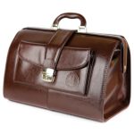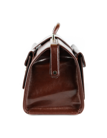 Solidna i elegancka torba lekarska Torba lekarska zapinana na długi język z mechanizmem tik-tak to doskonałe połączenie elegancji i funkcjonalności. Zaprojektowana z myślą o potrzebach profesjonalistów. Otwierana za pomocą 2 solidnych stalek, co zapewnia trwałość i długą żywotność torby. Przemyślane Wnętrze Wnętrze torby składa się z jednej dużej komory, oferując dużo miejsca na niezbędne przedmioty. Po jednej stronie znajduje się długa kieszeń, idealna na laptop, receptownik, notatki czy też stetoskop. Na przeciwległej ścianie naszyto 3 materiałowe kieszonki, które sprawdzą się jako miejsce na długopisy, leki lub inne drobne przedmioty. Wzdłuż tej samej ściany biegnie również długa kieszeń zapinana na zamek, zapewniająca dodatkową ochronę dla cenniejszych przedmiotów. Kieszenie Zewnętrzne i Metalowe Stópki Na przedniej ścianie torby znajduje się elegancka kieszeń zapinana na magnes, doskonała na telefon, klucze czy portfel. Z tyłu torby również dodano kieszeń, zapinaną na tik-tak, zapewniając dodatkowe miejsce na rzeczy, do których chcesz mieć szybki dostęp. Spód torby jest wyposażony w cztery metalowe stópki, które chronią ją przed otarciami i uszkodzeniami. Wysoka Jakość Wykonania i Wybór Kolorów Torba polskiego producenta, wykonana z naturalnej skóry bydlęcej, co gwarantuje jej wysoką jakość i wytrzymałość. Dzięki temu torba będzie służyć przez wiele lat, niezależnie od intensywności użytkowania. Ostateczny wybór koloru należy do Ciebie, co pozwala dopasować torbę do Twojego stylu i preferencji. Wymiary: 39x26x21 [cm]