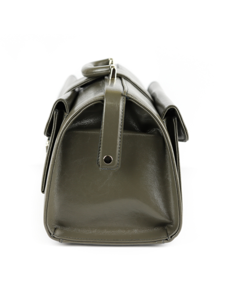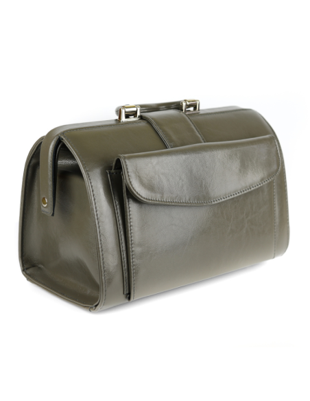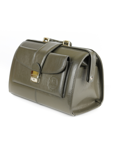 Solidna i elegancka torba lekarska Torba lekarska zapinana na długi język z mechanizmem tik-tak to doskonałe połączenie elegancji i funkcjonalności. Zaprojektowana z myślą o potrzebach profesjonalistów. Otwierana za pomocą 2 solidnych stalek, co zapewnia trwałość i długą żywotność torby. Przemyślane Wnętrze Wnętrze torby składa się z jednej dużej komory, oferując dużo miejsca na niezbędne przedmioty. Po jednej stronie znajduje się długa kieszeń, idealna na laptop, receptownik, notatki czy też stetoskop. Na przeciwległej ścianie naszyto 3 materiałowe kieszonki, które sprawdzą się jako miejsce na długopisy, leki lub inne drobne przedmioty. Wzdłuż tej samej ściany biegnie również długa kieszeń zapinana na zamek, zapewniająca dodatkową ochronę dla cenniejszych przedmiotów. Kieszenie Zewnętrzne i Metalowe Stópki Na przedniej ścianie torby znajduje się elegancka kieszeń zapinana na magnes, doskonała na telefon, klucze czy portfel. Z tyłu torby również dodano kieszeń, zapinaną na tik-tak, zapewniając dodatkowe miejsce na rzeczy, do których chcesz mieć szybki dostęp. Spód torby jest wyposażony w cztery metalowe stópki, które chronią ją przed otarciami i uszkodzeniami. Wysoka Jakość Wykonania i Wybór Kolorów Torba polskiego producenta, wykonana z naturalnej skóry bydlęcej, co gwarantuje jej wysoką jakość i wytrzymałość. Dzięki temu torba będzie służyć przez wiele lat, niezależnie od intensywności użytkowania. Ostateczny wybór koloru należy do Ciebie, co pozwala dopasować torbę do Twojego stylu i preferencji. Wymiary: 39x26x21 [cm]