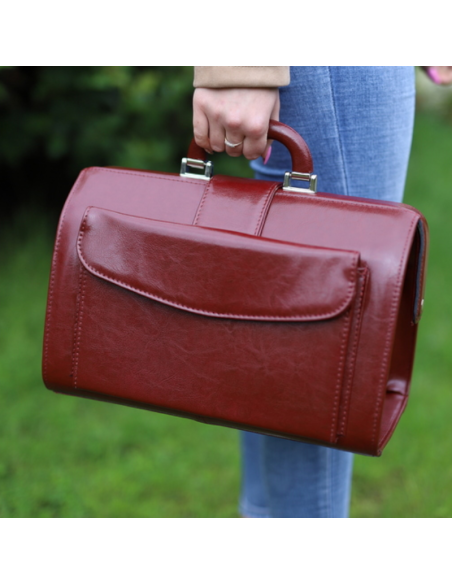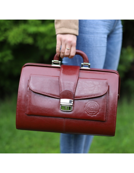 GALSKÓR 551 WIŚNIA DUŻA Torba lekarska, skórzana torba z metalowym stelażem
