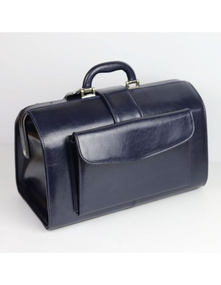 Elegancka, mała torba doktorska zapinana na długi język z tik-takiem Przedstawiamy piękną torbę uszytą z naturalnych skór bydlęcych, która nie tylko zachwyca swoim wyglądem, ale także zapewnia niezrównaną funkcjonalność w codziennej pracy medycznej. Nasz kuferek, zapinany na długi język z charakterystycznym tik-takiem, to synonim profesjonalizmu i stylu w każdym calu. 2 solidne stalki Zapewniają bezpieczne przechowywanie, łatwe otwieranie i szybki dostęp do sprzętu medycznego. We wnętrzu torby znajduje się komora oraz długa kieszeń na np. tablet, notatnik, stetoskop i recepty. Po przeciwnej stronie znajdziesz trzy kieszonki na długopisy czy leki, a także długą kieszeń zamykaną na zamek. 2 eleganckie kieszenie Na zewnątrz torby znajdują się dwie eleganckie kieszenie: jedna zapinana na magnes na przedniej ścianie, a druga na tylnej stronie, również zapinana na tik-tak.  Dostępna w różnych kolorach, nasza torba pozwala Ci wybrać opcję, która najlepiej odzwierciedla Twój styl i potrzeby. Metalowe stópki chronią ją przed uszkodzeniami. Wymiary: 35x23x19 cm.
