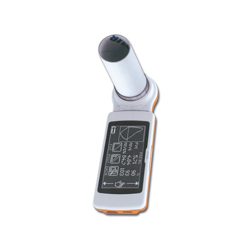 Spirometr SPIROLAB® z możliwością pomiaru SPO2 Cechy: 7-calowy kolorowy wyświetlacz i drukarką Cechy: – FVC, VC, MVV, w porównaniu oskrzela przed / po z szerokiej gamy parametrów wybieralnych Kolorowy wyświetlacz z ekranem dotykowym 7 cali Podłączone do zewnętrznej drukarki PostScript poprzez USB 10.000 badań spirometrycznych lub 500 godzin nagrywania oximetric Języków do wyboru oprogramowania: GB, FR, IT, ES, DE, PT Opcja oksymetria Wielokrotnego użytku sonda palca dla dorosłych i dzieci. Przepływ MIR® – jednorazowy przepływomierz zgodny ze standardem ATS / ERS ustnik, turbina i całkowicie jednorazowy filtr. Nie wymaga kalibracji. Nadaje się również do stosowania w pediatrii bez potrzeby stosowania adaptera. Oprogramowanie Winspiro PRO® z bezpłatną aktualizacją do komputera do spirometrii i oksymetrii. Wielojęzyczne oprogramowanie: GB, FR, IT, ES, DE, PT, PL, NL, LV, SE, CZ, RU, TR, JP, CN. CHARAKTERYSTYKA TECHNICZNA SPIROMETRU: Zasilanie: Akumulator około 10 godzin Czujnik temperatury: półprzewodnik (0-45 ° C) Czujnik przepływu: półprzewodnikowa turbina cyfrowa Natężenie przepływu: ± 16L / s Dokładność objętości: ± 3 % lub 50 ml Dokładność przepływu: ± 5% lub 200 ml / s Odporność dynamiczna: