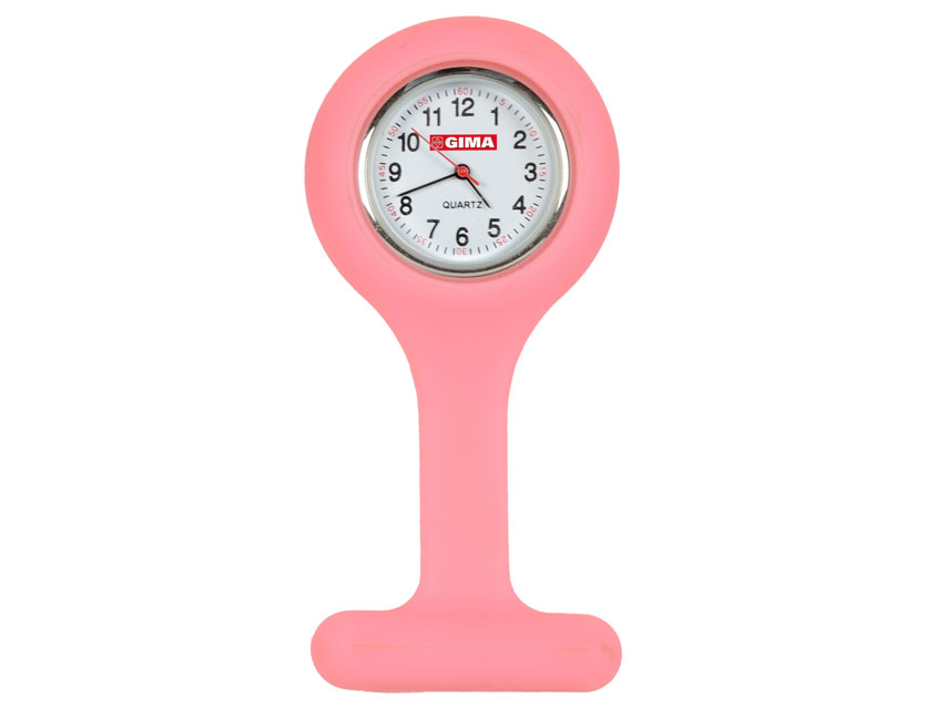 GIMA RÓŻOWY Zegarek pielęgniarski silikonowy, z agrafką i dużą tarczą 35 mm