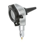 Precyzja ostrości, oddania kolorów i jasności w technologii LED HQ Otoskop z metalową obudową i soczewkami odpornymi na zarysowanie. Dioda LED o żywotności ok. 100 000 godzin bez konieczności wymiany. Powiększenie 3 x: okienko wzierne z kilkakrotnie ulepszanego szkła daje obrazy o ostrych konturach i bez zniekształceń. Oświetlenie światłowodowe. Umożliwia równomierne, jasne oświetlanie oraz niezacieniony widok kanału słuchowego i błony bębenkowej. Temperatura koloru 3 500 K, wskaźnik odwzorowania koloru (CRI) > 97 na skali do 100, specjalny wskaźnik dla koloru czerwonego: R9 > 93. Oświetlenie LED jest dostosowane do systemu optycznego i w rezultacie zapewnia jasne (77 000 lux z wziernikiem) i równomierne światło. Płynna regulacja jasności w przedziale od 100 % do 3 % z obsługą jednym palcem. Zamontowane na stałe odchylane okienko wzierne umożliwia czyszczenia głowicy. Wbudowane przyłącze gruszki insuflacyjnej. Umożliwia pneumatyczne badanie ruchomości błony bębenkowej. Funkcjonalność BETA 200 LED jest gwarantowana za pomocą rękojeści akumulatorowych BETA oraz transformatora ściennego EN 100. Dostępne wersje otoskopu światłowodowego BETA 200 LED HQ: B-008.11.501 Otoskop światłowodowy BETA 200 LED HQ z 4 wziernikami wielokrotnego użytku, bez rękojeści B-008.11.500 Otoskop światłowodowy BETA 200 LED HQ bez wzierników, bez rękojeści