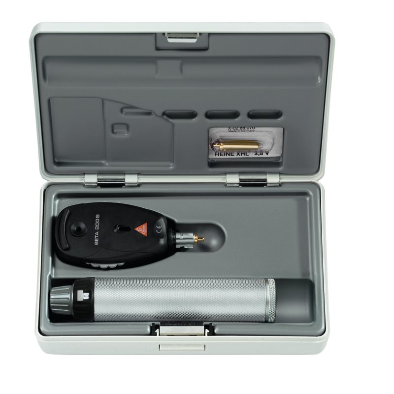 LED w jakości HQ Temperatura koloru 4 000 K, wskaźnik odwzorowania koloru (CRI) > 95 na skali do 100, specjalny wskaźnik dla koloru czerwonego: R9 > 90. Wskaźnik wydajności baterii Instrument jest włączany z maksymalną intensywnością oświetlenia, a następnie natężenie oświetlenia jest regulowane do poziomu, który odpowiada aktualnemu stanowi baterii, dzięki czemu wiadomo kiedy baterie trzeba będzie wymienić. Funkcja przyciemniania Funkcja przyciemniania zmniejsza intensywność oświetlenia wraz z poziomem zużywania się baterii, informując o konieczności ich wymiany. 27 soczewek Szeroki zakres soczewek: 27 soczewek korekcyjnych w zakresie –35 D do +40 D. Ostrość nawet przy wysokich wadach refrakcji. + krok co 1 D: 1 – 10 15 20 40 D – krok co 1 D: 1 – 10 15 20 25 35 D 5 przesłon Gwiazdka fiksacyjna, duże koło, małe koło, półkole i filtr bezczerwienny. Odpowiednie dla dużych lub małych źrenic. Obudowa poliwęglanowa Zestaw zawiera Oftalmoskop mini 3000 LED 2,5 V LED rękojeścią bateryjną mini 3000, z bateriami D-008.71.120