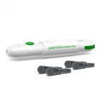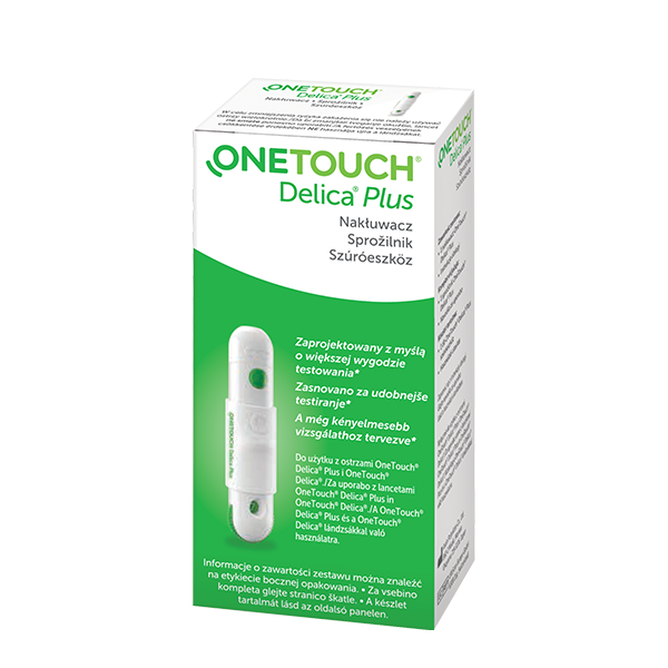 One Touch Delicia Plus nakłuwacz. System sterowania Advanced Glide® naprowadza ostrze szybkim ruchem, nakłuwając płynnie i pewnie. 13 ustawień głębokości dla lepszej kontroli. Kompatybilny z ostrzami OneTouch® Delica® oraz z ostrzami OneTouch Delica® Plus®. Do każdego pobrania próbki krwi używaj nowego ostrza. W ten sposób zapobiegniesz zakażeniu i zmniejszysz ból. Jak używać nakłuwacza One Touch? Krok 1. Zdejmij czarną zatyczkę (obróć w kierunku przeciwnym do ruchu wskazówek zegara i pociągnij) i wsuń ostrze aż do jego zatrzaśnięcia na miejscu. Krok 2. Odkręć plastikową osłonę ostrza za pomocą jednego pełnego obrotu. Załóż czarną zatyczkę; dokręć zgodnie z kierunkiem ruchu wskazówek zegara w celu zamocowania. Krok 3. Ustaw głębokość nakłucia: 1–7 (1 najpłytsze nakłucie; 7 najgłębsze nakłucie). Krok 4. Naciągnij przycisk napinający aż do kliknięcia. Przytrzymaj nakłuwacz w stabilnej pozycji, dotykając nim boku palca. Naciśnij okrągły przycisk zwolnienia blokady. Krok 5. Aby wysunąć ostrze, zdejmij czarną zatyczkę (patrz Krok 1). Umieść plastikową osłonę ostrza na twardej powierzchni stroną z wgłębieniem skierowaną do góry. Mocno wciśnij końcówkę ostrza w osłonkę. Jeśli to konieczne, odciągnij przycisk napinający aż do kliknięcia. Spowoduje to przygotowanie nakłuwacza, które umożliwi skuteczne wysunięcie ostrza. Przesuwaj przycisk wysuwania ostrza do przodu aż do wysunięcia ostrza z nakłuwacza. Cofnij przycisk wysuwania ostrza.