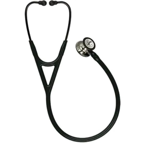 Littmann Cardiology IV Stetoskop diagnostyczny Do diagnozowania schorzeń, takich jak zwężenie aorty, szmery tonu trzeciego (S3) oraz ledwie słyszalne anomalie płucne. Cechy: Do badań o znaczeniu krytycznym oraz na oddziale ratunkowym, oddziale intensywnej terapii, oddziale intensywnej terapii kardiologicznej oraz oddziale terapii półintensywnej Wysoki profil i ergonomiczny kształt; o 40% większa głowica i o 60% głębszy lejek niż w stetoskopie 3M™ Littmann® Classic III™ Zastosowanie u dorosłych i dzieci Regulowana dwustronna głowica ze stali nierdzewnej z otwartym lub zamkniętym lejkiem Ciepła obwódka Miękkie oliwki Dwustronna głowica Littmannn Cardiology IV posiada dwustronną głowicę: dużą membranę o rozmiarze 43mm, oraz małą membranę pediatryczną 34mm. Pediatryczna strona głowicy zmienia się w tradycyjny otwarty lejek (przy zdjęciu dwutonowej membrany i założeniu gumowego rękawa). Zarówno pediatryczna, jak i internistyczna strona głowicy mają jednoczęściowe membrany, które można odczepiać, przyczepiać i czyścić. Konstrukcja głowicy opracowana jest maszynowo ze stali nierdzewnej. Głowica wykonana z lekkiego stopu aluminium. Technologia dwutonowej membrany umożliwia klinicystom osłuchiwanie dźwięków o różnych częstotliwościach przez dostosowywanie nacisku na klatkę piersiową. Przyłożenie głowicy z małą siłą umożliwia nam usłyszenie dźwięków o niskiej częstotliwości, wywarcie odrobinę większej siły pozwala usłyszeć dźwięki o wyższej częstotliwości. Lira z podwójnym światłem przewodu Przewód jest bezlateksowy. Wykazuje odporność na lipidy skórne, alkohol oraz zabrudzenia. Podwójne światło przewodu eliminuje zakłócenia dźwięków występujące w tradycyjnych stetoskopach. Lira wykonana z stopu wykorzystywanego w lotnictwie (Anodowane aluminium). Prezentowany model to 3M™ Littmann® Cardiology IV™ z głowicą z wykończeniem w kolerze szampańskim. Przewód czarny. Model: 6179