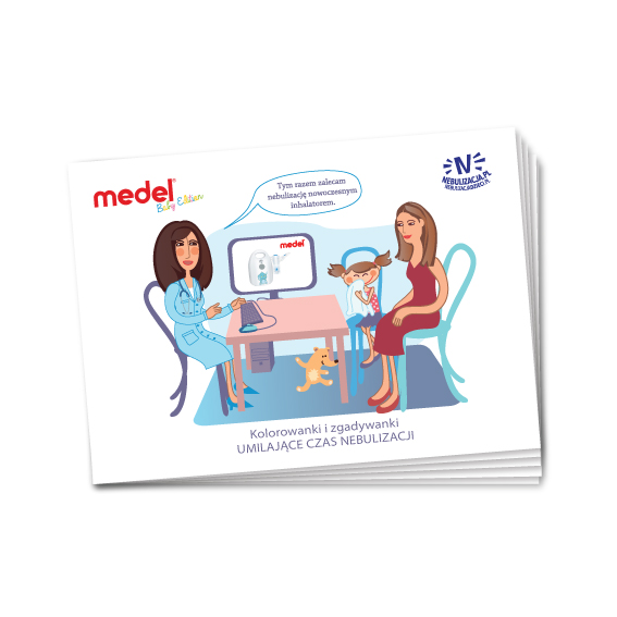 Nowa linia produktowa firmy Medel. Zalety dobrze znanego i cenionego inhalatora Medel Plus z dodatkami dla Twojego dziecka. By inhalacja była jeszcze przyjemniejsza. W zestawie znajduje się dodatkowo naklejka na inhalator, kredki oraz malowanki dla dzieci. W tym zestawie znajduje się dodatkowo maseczka dla noworodków. Inhalator Medel Family Plus Elefante z nebulizatorem Medel Jet Plus Wspomagany wdechem nebulizator Medel Jet Plus charakteryzuje się wyjątkowo wysoką wydajnością. Został zaprojektowany z myślą o maksymalnym ograniczeniu utraty leku, w tym celu zastosowano system podwójnych zaworów. W trakcie inhalacji, kiedy mgiełka aerozolu zostaje wytworzona z leku za pomocą kompresora, a pacjent bierze wdech, jeden z zaworów pozostaje otwarty i uwalnia lek, co znacznie podnosi wydajność nebulizacji i minimalizuje utratę leku. Po wydechu jeden zawór zamyka się, a drugi zawór nie pozwala na samowolne uwalnianie się mgiełki z nebulizatora, tym samym zapobiega ulatnianiu się leku. Wydajna i skuteczna terapia dróg oddechowych w Twoim domu z Inhalatorem Medel Family Plus Frakcja respirabilna czyli przyswajalność mgiełki leku, w drogach oddechowych przy zastosowaniu nebulizatora Medel Jet Plus wynosi aż 92,6 %. Cząsteczka o wielkości 0,8 μm (MMAD) będzie docierała i wchłaniała się najlepiej w dolnych drogach oddechowych. Terapia przy użyciu nebulizator Medel Jet Plus przyniesie ulgę i wyraźnie wspomoże leczenie u osób cierpiących na przewlekłe zapalenie płuc, POChP, ostre zapalenie oskrzeli i inne schorzenia dolnych dróg oddechowych. W Medel wiemy, że czas inhalacji ma znaczenie dla Twojej rodziny Medel Family Plus to inhalator stworzony z myślą o dorosłych i dzieciach. Atrakcyjny i pomysłowy design, pozwala na łatwą obsługę urządzenia. Zintegrowana rączka umożliwia przenoszenie inhalatora w bezpieczny sposób. Nebulizator Medel Jet Plus umieszczany jest na zewnątrz obudowy inhalatora wyklucza to konieczności otwierania, instalowania oraz wyjmowania nebulizatora. Ponadto ilość leku w pojemniku łatwo kontrolować w trakcie inhalacji, która trwa tylko 5 minut dla 1,5 ml lekarstwa. Kolorowanki dla dzieci – umilające czas nebulizacji (w zestawie). Ultracichy kompresor z nowoczesnym systemem wyciszania dźwięku W inhalatorze Medel Family Plus zastosowano system wyciszania dźwięku kompresora, umieszczono w nim najnowszej generacji konstrukcję z trzema łożyskami kulkowymi i dwoma zintegrowanymi tłumikami. Domownicy korzystający z inhalatora Medel Family Plus będą słyszeli 52dBA czyli tylko cichy dźwięk kompresora oraz wszelkie inne odgłosy w otoczeniu. Inhalowane dziecko lub maluch przebywający w pobliżu włączonego Family z łatwością zaakceptuje formę pracy inhalatora. Maska Medel Soft Touch dla podniesienia komfortu inhalacji u dzieci i dorosłych W zestawie akcesoriów dołączonych do inhalatora Medel Family Plus, znajdują się trzy maski Medel Soft Touch, dla dorosłych oraz dla dzieci powyżej 6 miesiąca życia. Dodatkowo jest dodana maseczka dla noworodków. Maseczki są zakończone miękką i przyjemną dla skóry uszczelką, która zapobiega podrażnieniom delikatnej skóry twarzy. Szczelnie przylegająca maska ma fundamentalne znaczenie dla osób, które nie chcą lub nie mogą stosować ustnika. Dla najmłodszych pacjentów maseczka jest jedynym rozwiązaniem, wystarczy, że dziecko będzie oddychało, a mgiełka z nebulizatora wraz z wdechem będzie kierowana do dróg oddechowych. Maski łatwo utrzymać w czystości, wystarczy umyć je w letniej wodzie z niewielkim dodatkiem płynu do naczyń, osuszyć i schować. Zestaw z inhalatorem Medel Family Plus W zestawie z inhalatorem Medel Family Plus są, nebulizator Medel Jet Plus, ustnik, końcówka do nosa, przewód powietrzny, zamienne filtry powietrza, maska Medel Soft Touch dla dorosłych, Maska Medel Soft Touch dla dzieci 6m+, karta gwarancyjna, instrukcja w języku polskim oraz wygodna i poręczna torba Medel do bezpiecznego przechowywania i transportowania akcesoriów. 5 lat gwarancji Inhalator Medel Family Plus został objęty 5 letnią gwarancją, co daje każdej rodzinie pewność, że w razie nieprzewidzianych usterek, pozostaje pod opieką naszego serwisu.