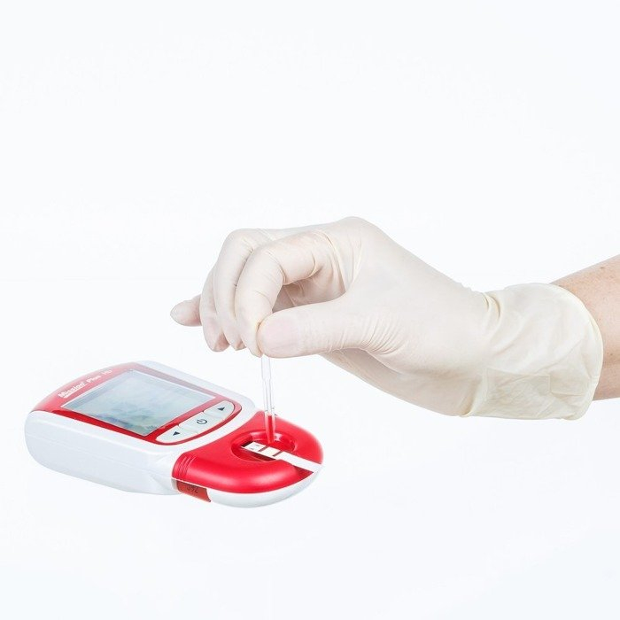 Aparat do oznaczania hemoglobiny i hematokrytu Mały przenośny analizator, który umożliwia wykonanie pomiaru hemoglobiny oraz hematokrytu z jednej kropli krwi (10 ul) z palca lub krwi pełnej żylnej. Wynik otrzymujemy już po 15 sekundach bezpośrednio przy pacjencie, więc może być stosowany w gabinetach lekarskich, przychodniach i szpitalach.materiał do badań – krew z opuszka palcałatwy i wygodny w użyciuwynik do 15 sek.próbka krwi 10µlpamięć do 1000 wyników Zestaw zawiera: Aparat Mission Plus Hb HEMOGLOBIN TESTING SYSTEMBaterie AAA – 4 szt.Paski testowe – 10 szt.Paski kontrolne – 2 szt.Palstikowe kapilarki – 10 szt.1 chipFuterałInstrukcję obsługi aparatuKartę gwarancyjnąInstrukcję użycia pasków testowychInstrukcję użycia pasków kontrolnych Dodatkowe akcesoria (nie wchodzące w skład zestawu): – Paski testowe – 5 x 10 szt. opakowanie zawiera 50 testów, 1 chip, 1 instrukcję użycia pasków – Plastikowe kapilarki – 50 szt. – Nakłuwacze – 20 szt. – Roztwór kontrolny na 3 poziomach – 3 x (2×1 ml) 2 lata gwarancji