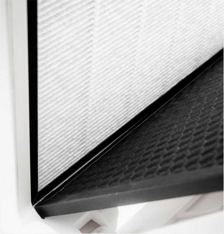 Olimpia Splendid B0846 zestaw filtrów Aura Di, pyłoszczelny, HEPA i węgiel aktywny, żywotność do 2000 godzin, czarnyPo 2000 godzinach pracy dioda LED świeci przycisk “Filter Reset”, aby zwrócić uwagę, że konieczne jest czyszczenie lub wymiana filtrów. 1 x filtr wstępny / filtr HEPA, 1 x filtr z węglem aktywnym Filtr wstępny skutecznie blokuje zanieczyszczenia powietrza (włosy, papier i inne materiały) i poprawia żywotność filtra HEPA. Filtr HEPA filtruje 99% cząstek o średnicy 0,3 mikrona. Specjalnie do usuwania kurzu, dymu papierosowego, bakterii, sadzy, pyłków i cząstek radioaktywnych.Wysokiej jakości filtr z węglem aktywnym skutecznie usuwa zapachy z powietrza, takie jak formaldehyd, benzol, amoniak i cząsteczki wody