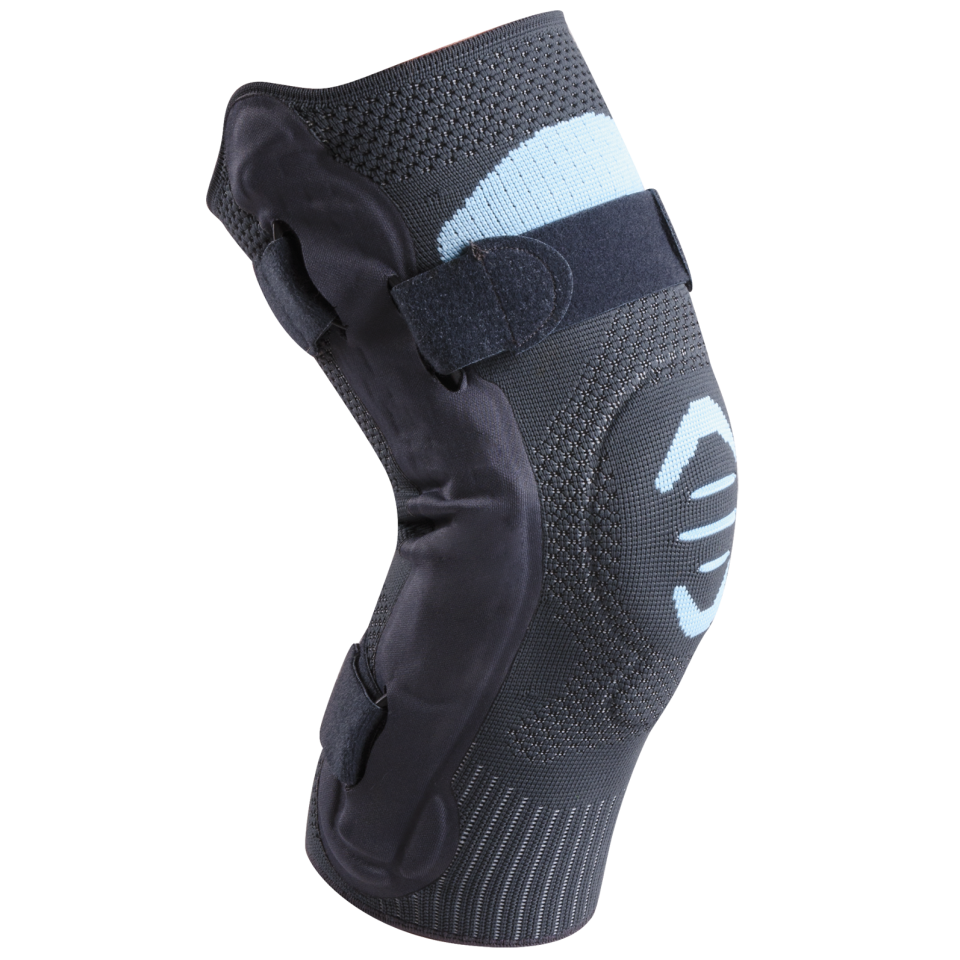 - Anatomiczny kształt umożliwiający lepsze dopasowanie do budowy ciała: strefa komfortu w tylnej części stawu kolanowego, elastyczna dzianina na udzie