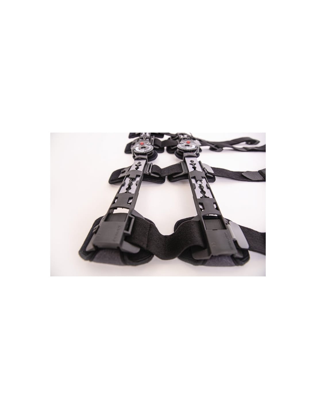 Przyjazna dla użytkownika orteza X-ROM™ z systemem regulacji Quick-Lock i blokadami ustawienia zegara kontrolującymi i zabezpieczającymi zakres ruchu. Dzięki zastosowaniu czterech niezależnie przesuwających się teleskopowych szyn i możliwości dopasowania do nogi pacjenta w sposób ułatwiający wsparcie w koślawości lub szpotawości kończyny dolnej ortezę X-ROM można wygodnie dostosować do różnych kształtów i rozmiarów kończyn.