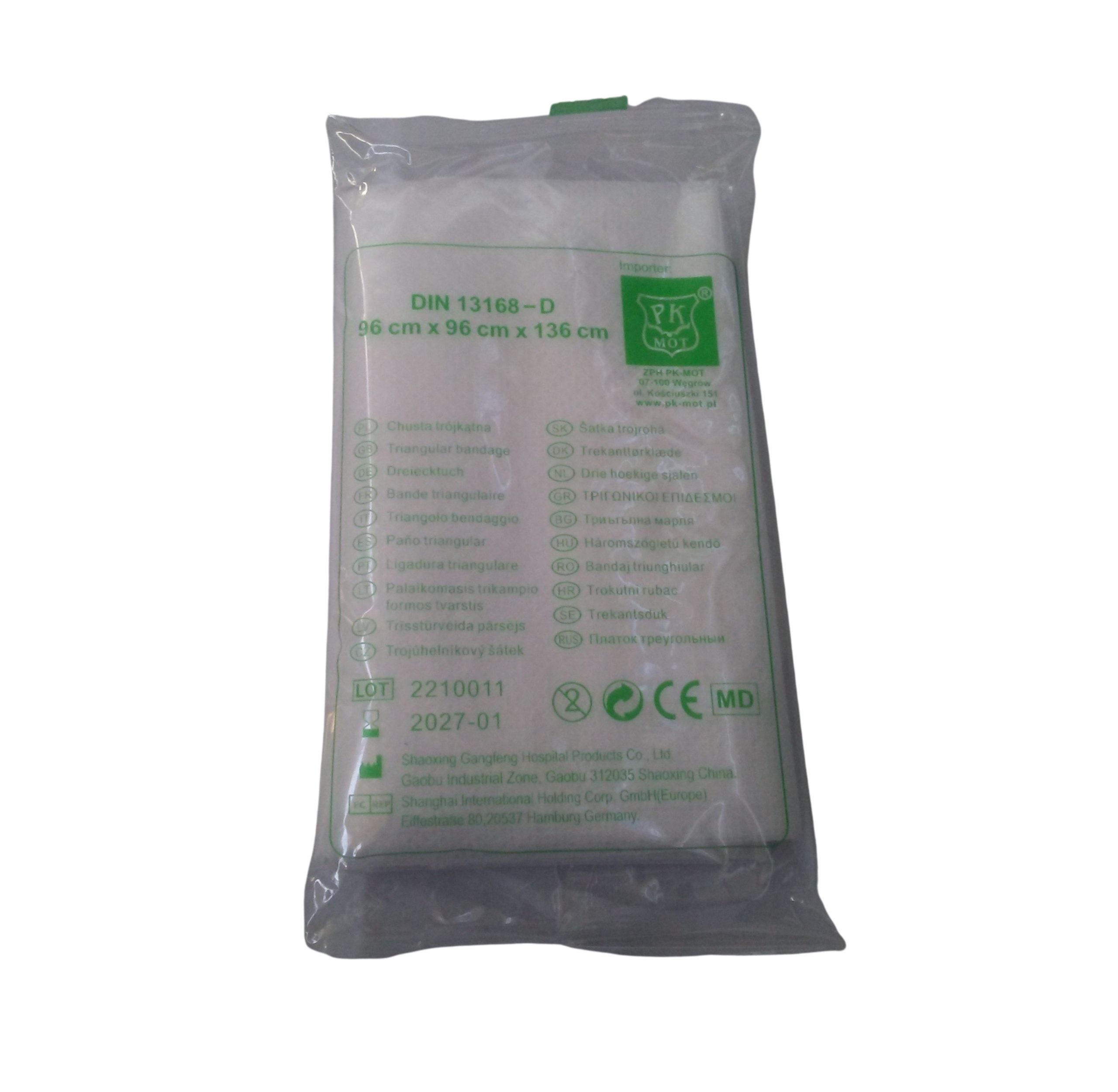 Włókninowa chusta trójkątna Chusta trójkątna to podstawowy element wyposażenia w apteczkach pierwszej pomocy stosowany w celu tymczasowego unieruchomienia kończyny w przypadku zwichnięć albo złamania obojczyka, kości ramieniowej, kości przedramienia lub dłoni. Aby pewnie i sztywno unieruchomić kończynę niezbędne są trzy chusty. Materiał zapewnia przepływ powietrza.
