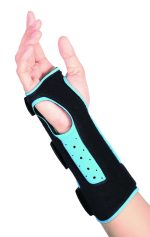 ZASTOSOWANIE: Produkt stosowany jest podczas zmian zwyrodnieniowych i stanów przeciążeniowych nadgarstka, podczas zespołów bólowych lub stanów zapalnych w przebiegu uszkodzeń nadgarstka, a także podczas ochrony nadgarstka w przypadku uprawiania sportów lub wykonywania zawodów związanych z ryzykiem powstania urazów (przeciążeń). CECHY PRODUKTU: konstrukcja ortezy jest lekka, otwarta i wykonana z pianki, nylonu, poliestru oraz lycry, jest dodatkowo wzmocniona dwiema fiszbinami, konstrukcja produktu zapewnia swobodne ruchy kciuka, profil ortezy zapewniający unieruchomienie stawu nadgarstkowego w pozycji funkcjonalnej, orteza posiada wyjmowalną anatomicznie wyprofilowaną stalkę, wersja na prawą i lewą rękę, kolor czarno-niebieski. ROZMIARY: Rozmiar S M L XL Obwód nadgarstka (cm) 13 – 15 15 – 18 18 – 20 20 – 22