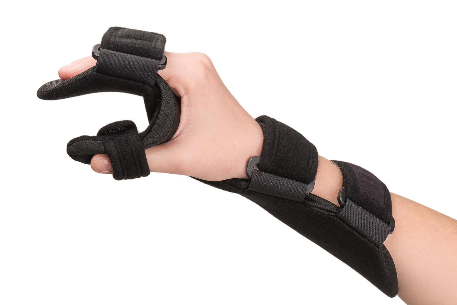 ZASTOSOWANIE: Szyna stosowana jest podczas schorzeń nadgarstka, ręki i palców, wymagających podparcia oraz stabilizacji zaopatrywanego obszaru w określonych ustawieniach korekcyjnych i/lub redukujących dolegliwości bólowych, stosowana jest również podczas zapaleń ścięgien, zespołów cieśni nadgarstka, reumatoidalnych zapaleń stawów, a także podczas profilaktyce przykurczów, uszkodzeń nerwów obwodowych i zabiegów chirurgicznych. CECHY PRODUKTU szyna, orteza nadgarstkowo-ręczno-palcowa z ujęciem kciuka, produkt mocowany jest za pomocą szerokich taśm z rzepem, wersja lewa i prawa. ROZMIARY: Rozmiar XS S M L szerokość ręki (cm) 6 – 7 7 – 8 8 – 9 9 – 10 Rozmiar ustala się na podstawie pomiaru szerokości ręki w centymetrach na wysokości stawów śródręczno-paliczkowych.