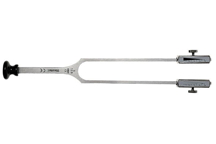 Stroiki z ciężarkami firmy Riester Model 5175 – Stroik C 64 / C 128 Hz, Rydel-Seiffer, stalowy z podstawą i regulowanymi ciężarkami
