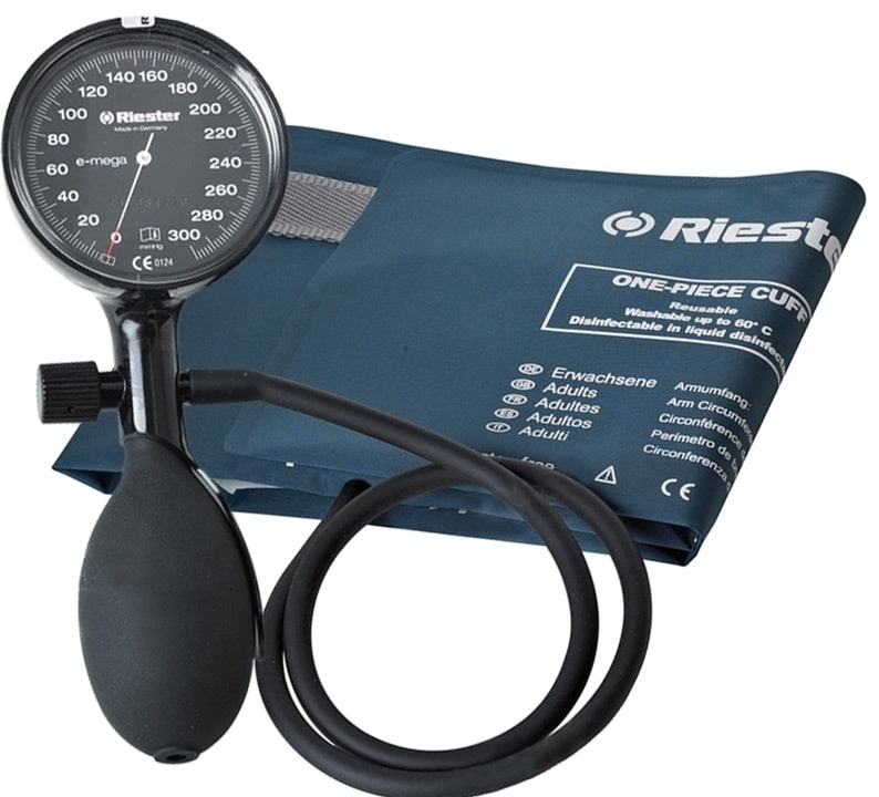 Ciśnieniomierz lekarski, zegarowy E-mega W całości wykonany z poliwęglanu. Mankiety dołączane do tego modelu charakteryzuje budowa jednoczęściowa oraz to, że są całkowicie bezlateksowe. Dostępny jest w kolorze białym. Ciśnieniomierz e-mega posiada świadectwo klinicznej walidacji BHS. Główne cechy ciśnieniomierza dla lekarza – E-mega: Korpus z poliwęglanu, czytelny manometr, duża skala o średnicy 63 mm (2,5 cala), wysokopolerowany manometr, łatwy do dezynfekcji, ergonomiczny kształt gruszki umożliwia szybkie pompowanie, zawór odpowietrzający z precyzyjną regulacją, kontrastowa wskazówka na skali, mankiety jednowężykowe, bezlateksowe, nadające się do prania, mikrofiltr zabezpiecza układ pomiarowy, obciążenie ciśnieniowe do 600 mm Hg, maksymalny błąd pomiarowy w zakresie +/- 3 mm Hg, posiada świadectwo klinicznej walidacji BHS, 2 lata gwarancji.