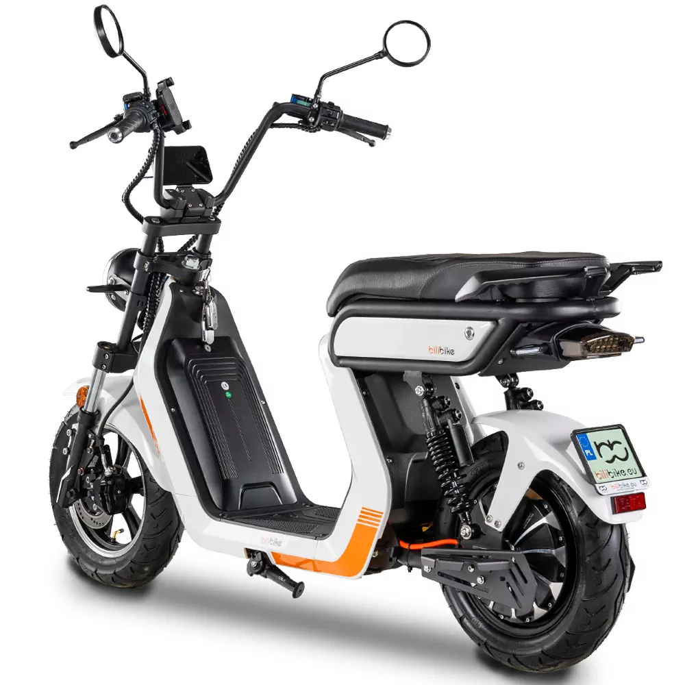 Skuter elektryczny BILI BIKE E-BALDUR DELIVERY 2.0 to unowocześniona wersja skutera miejskiego, ze względu na charakterystykę jest idealny dla każdego! Model E-BALDUR 2.0 wyróżnia się unikatowym, opartym na nowoczesnej kresce, designem, silnikiem o powiększonej aż do 3000 W mocy, pełnym oświetleniem LED, które pobiera znikome ilości prądu.