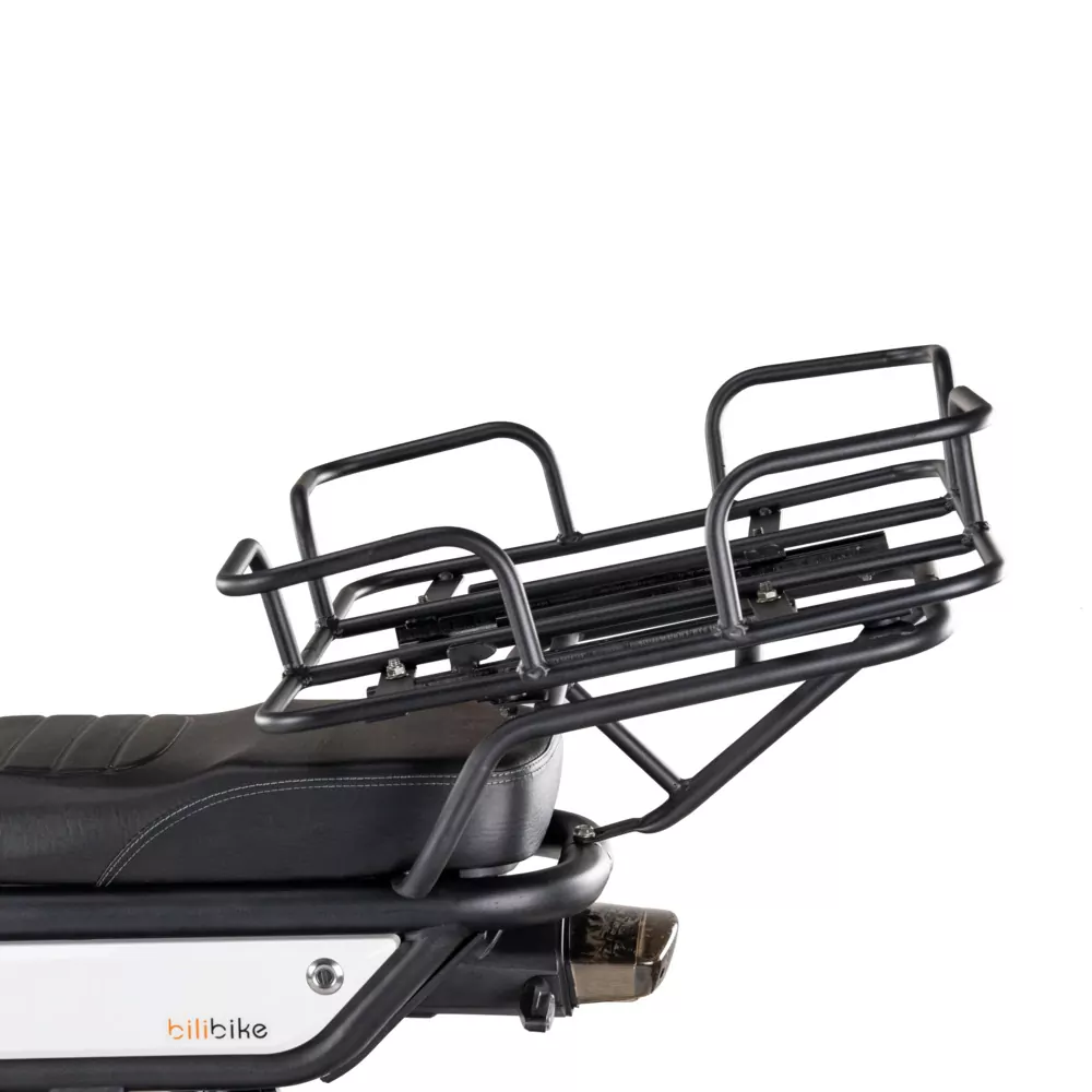 W konstrukcji sprytnie ukryto miejsce na 2 baterie o łącznej, ogromnej pojemności 80Ah! Jest to kilkukrotnie więcej jak w przypadku innych skuterów! Skuter fabrycznie wyposażono w alarm oraz uchwyt na telefon, co świetnie przydaję się w jeździe po mieście.