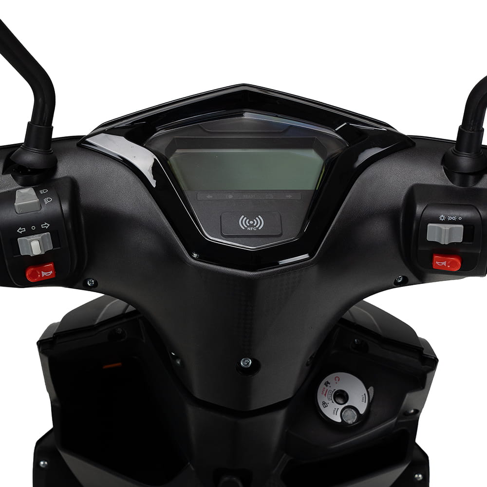 Wraz ze skuterem otrzymasz dwie karty/klucze NFC. Za ich pomocą możliwe jest uruchomienie skutera w nowoczesnym-bezdotykowym stylu. Wystarczy przyłożyć klucz, a pojazd będzie gotowy do jazdy.