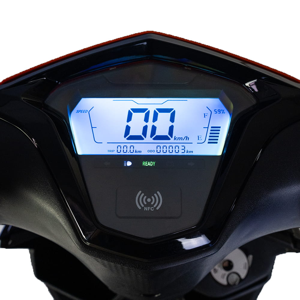 Zastosowany, przejrzysty wyświetlacz LCD jest łatwy do odczytania nawet przy dużym nasłonecznieniu, jak i w nocy. Na wyświetlaczu można sprawdzić najważniejsze parametry podczas jazdy takie jak prędkość czy stan naładowania baterii. Wyświetlacz pełni również funkcje licznika, pokazując przebyty już dystans. Proste i przejrzyste ikonki informują np. o włączonych światłach.