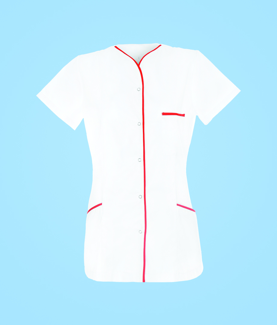 STELO ROZM. 4XL Tunika medyczna rozpinana, czerwona lamówka, 88023/WHTT/4XL