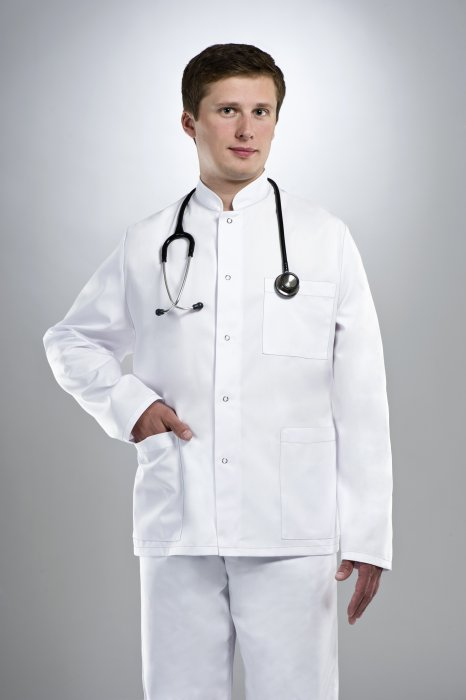Męski fartuch medyczny ze stójką. Wyposażony w 3 kieszenie: jedna na lewej piersi, dwie na biodrach. Posiada pasek do regulacji. Skład materiału: 65% poliester, 35% bawełna Dostepne rozmiary: 42 – 56 42 44 46 48 50 52 54 56 klatka piersiowa 84 88 92 96 100 104 108 112 biodra 74 78 82 86 90 94 98 102 talia 89 92 95 98 101 104 107 111 * tabela rozmiarów przedstawia wymiary obwodu ciała