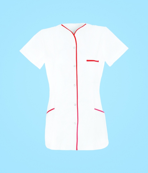 Damska tunika medyczna z czerwoną lamówką. Tunika wyposażona w trzy kieszenie. Krótki rękaw. Tunika jest taliowana dzięki czemu dopasowuje się do sylwetki. Zapinana z przodu na napy. Skład materiału: 65% poliester, 35% bawełna Dostępne rozmiary: XXS – 3XL XXS XS S M L XL 2XL 3XL biust 80 84 88 92 96 100 104 110 talia 62 66 70 74 78 82 86 92 biodra 86 90 94 98 102 106 110 116 * tabela rozmiarów przedstawia rzeczywisty wymiar odzieży