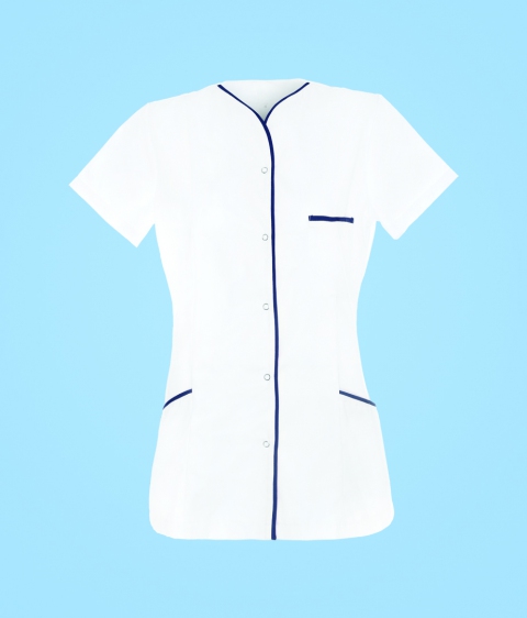 STELO ROZM. XXS Tunika medyczna rozpinana z lamówką granatową, TO88021/WHTT/XXS