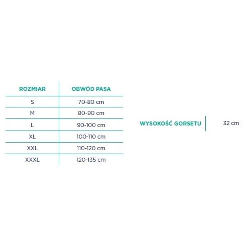 Wysoka orteza (gorset) piersiowo- lędźwiowo- krzyżowa Wysoka (orteza) gorset piersiowo-lędźwiowo-krzyżowa wykonana jest z elastycznej tkaniny kompresyjnej zapinanej z przodu na rzep, giętkich fiszbin, aluminiowych stalek odciążających i stabilizujących kręgosłup, a także systemu pasów dociągających pozwalających na regulację siły stabilizacji. Tkanina kompresyjna poprzez swoją przestrzenną strukturę pozwala na stały dostęp powietrza a także odprowadzenie nadmiaru wilgoci. Jest przy tym trwała i wygodna w codziennym użytkowaniu. Wysokość jest odpowiednia do stabilizacji kręgosłupa w odcinku piersiowo-lędźwiowo-krzyżowym. Wskazania do stosowania gorsetu: -dyskopatia -stany zapalne stawów kręgosłupa -ZZSK -bóle przeciążeniowe -zmiany zwyrodnieniowe -złamania patologiczne trzonu kręgu -zespoły neuropatyczne i korzeniowe -stany wzmożonego, bolesnego napięcia mięśni grzbietu -w leczeniu pooperacyjnym -w procesie rehabilitacji pourazowej -Kod produktu: TGO-R SLKP 703 Rozmiar – Obwód pasa S – 70 – 80 cm M – 80 – 90 cm L – 90 – 100 cm XL – 100 – 110 cm XXL – 110 – 120 cm XXXL – 120 – 135 cm
